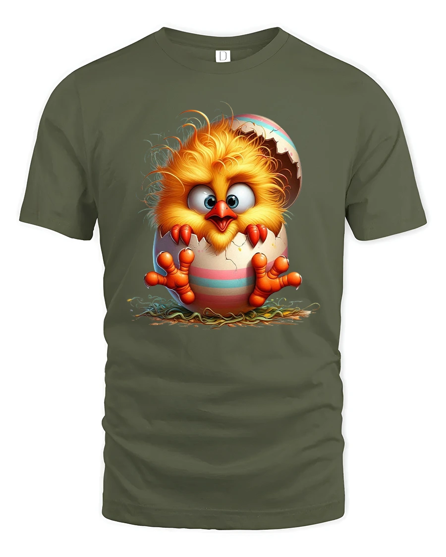 Cute Baby Chick Cracked Egg Funny Easter T-Shirt - military green t-shirt on white background