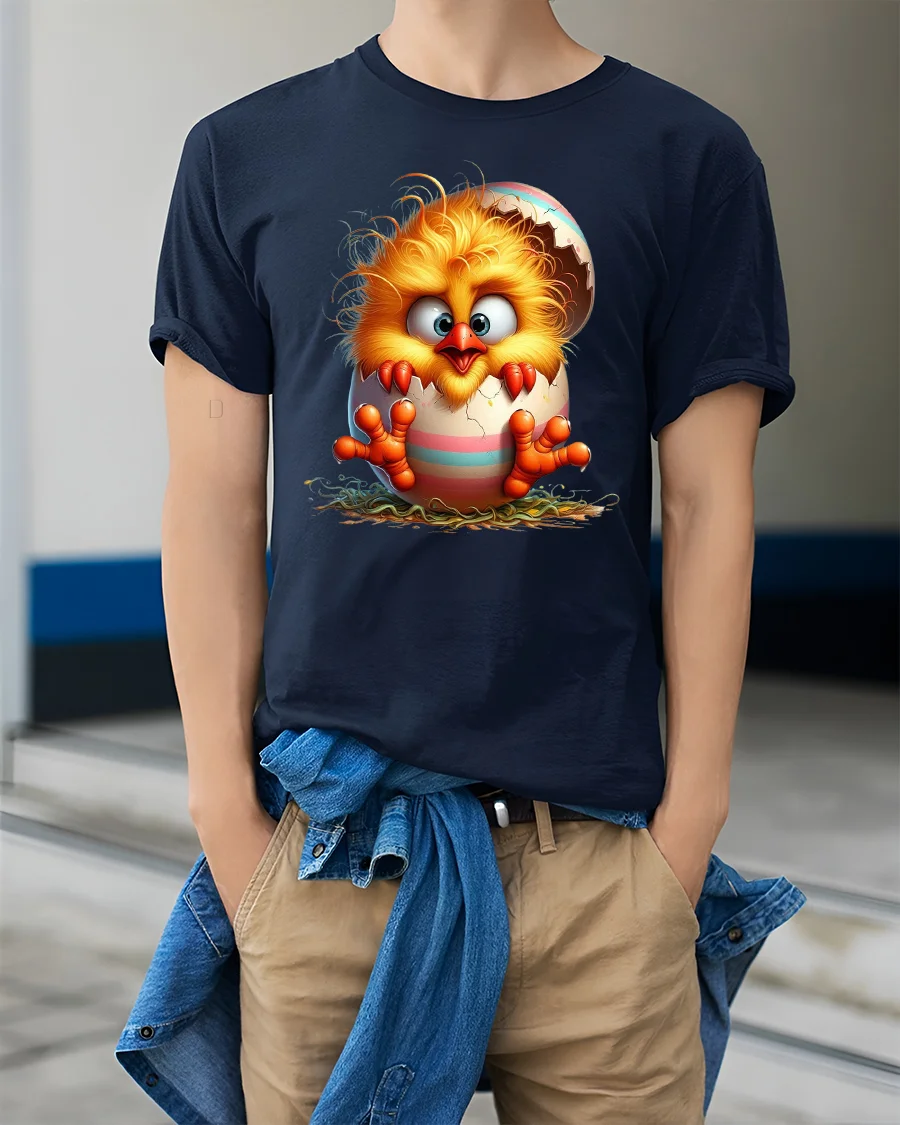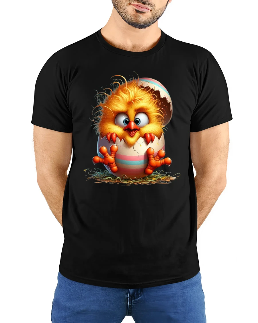 Featuring a fluffy yellow chick breaking out of a colorful egg, this tee perfectly captures the joy of Easter morning.
