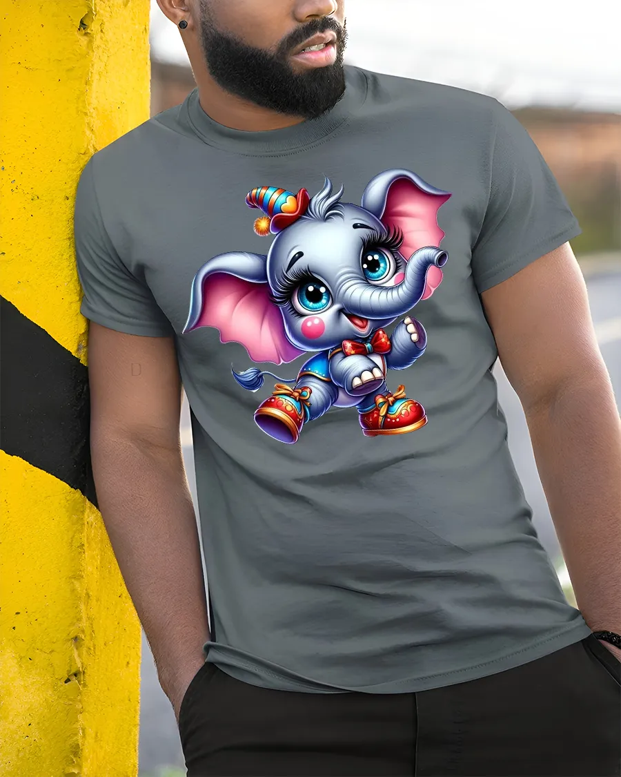 This cartoon elephant tshirt also makes a great gift for birthdays, animal lovers, or children who adore circus-style characters. Whether you’re wearing it to a party, family outing, or just lounging at home, this tee is guaranteed to spread smiles and happiness everywhere you go.