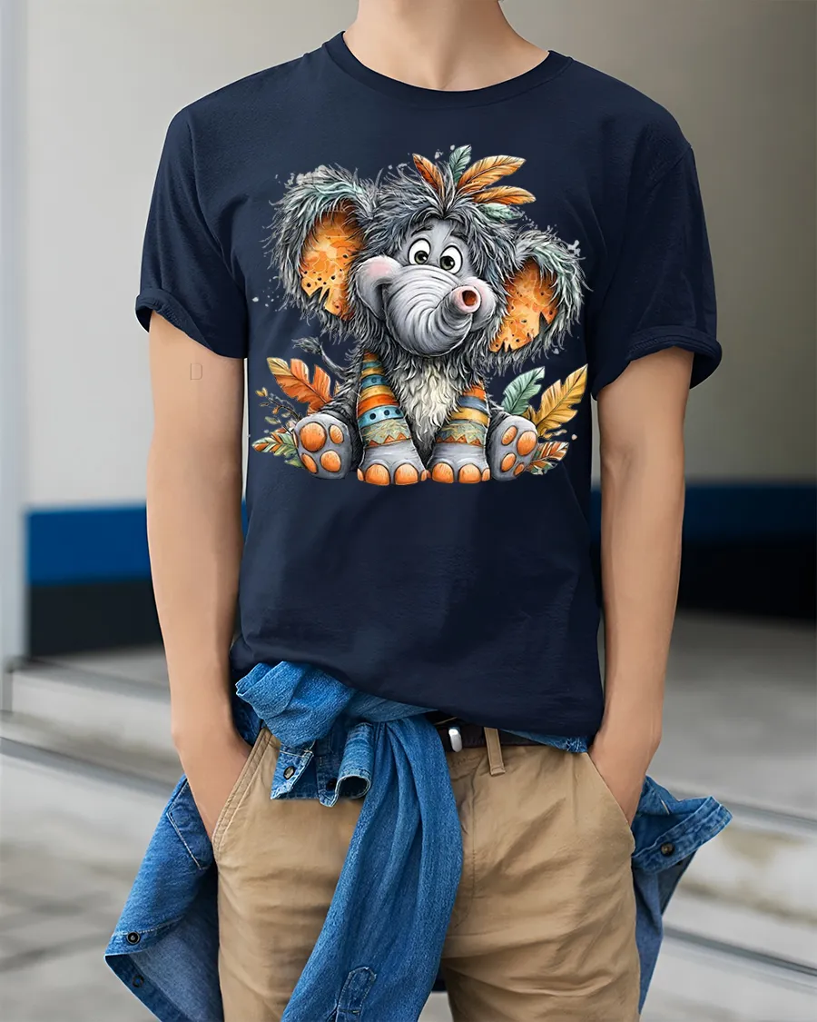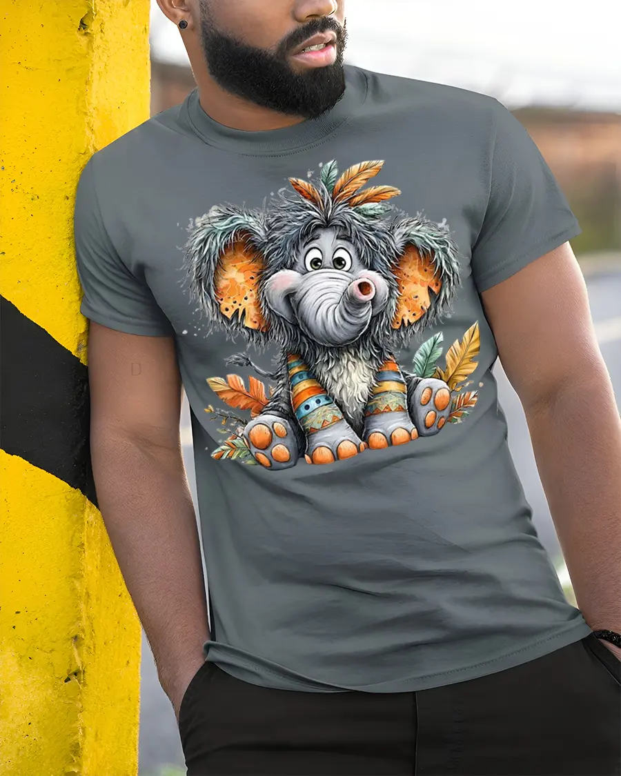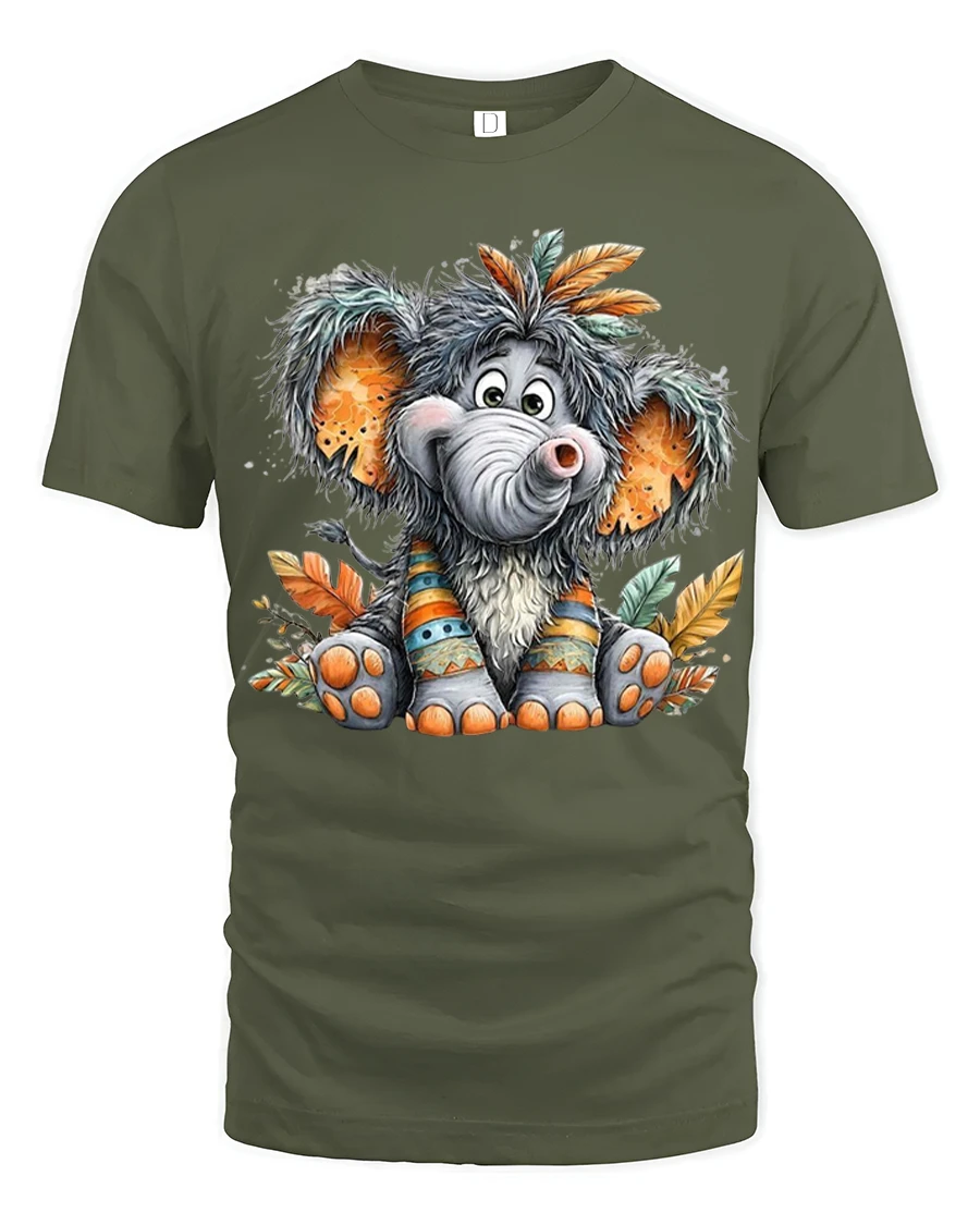 Cute Baby Elephant With Tribal Feathers Cartoon Art Graphic Tee delivers charm warmth and playful personality in one standout design.