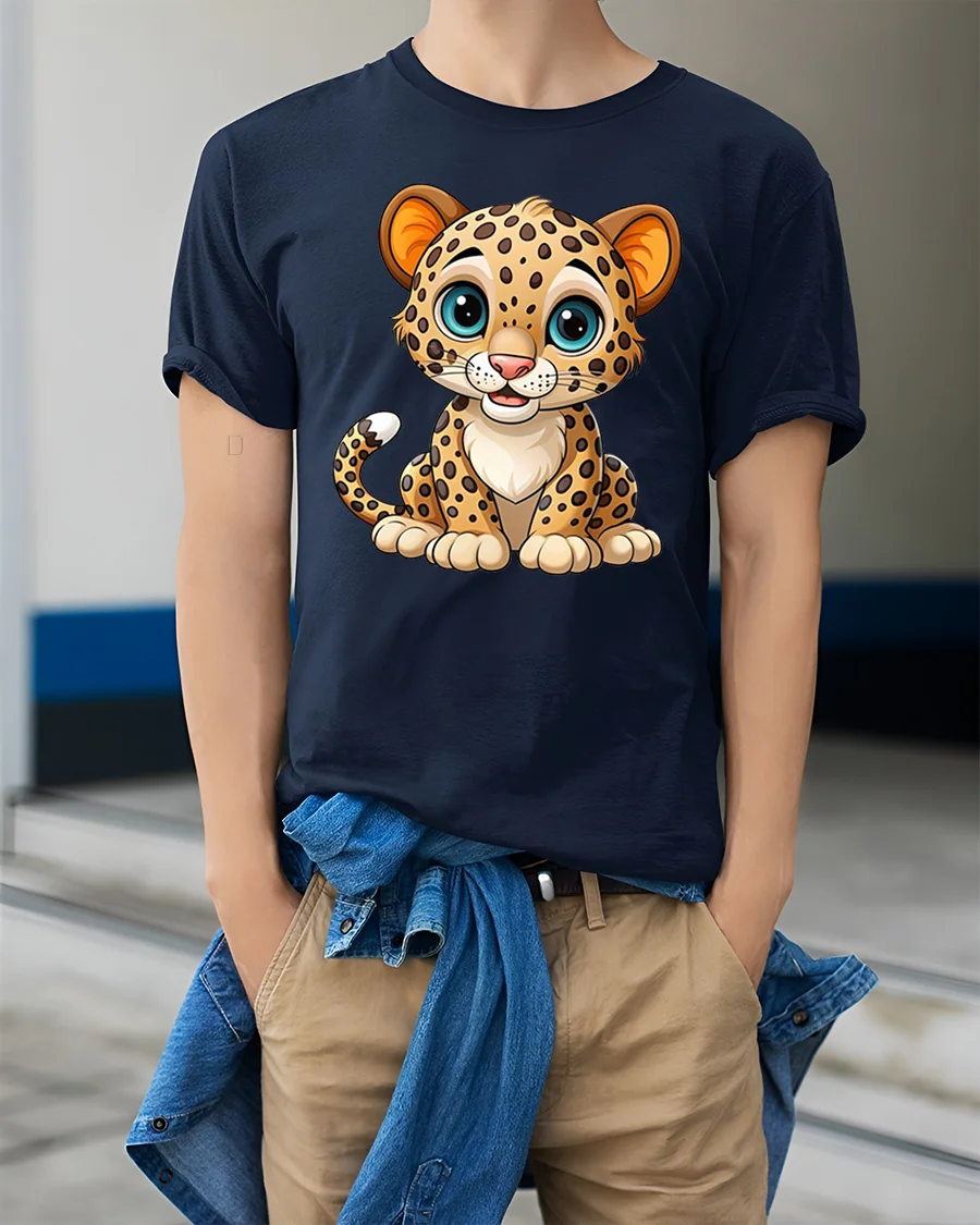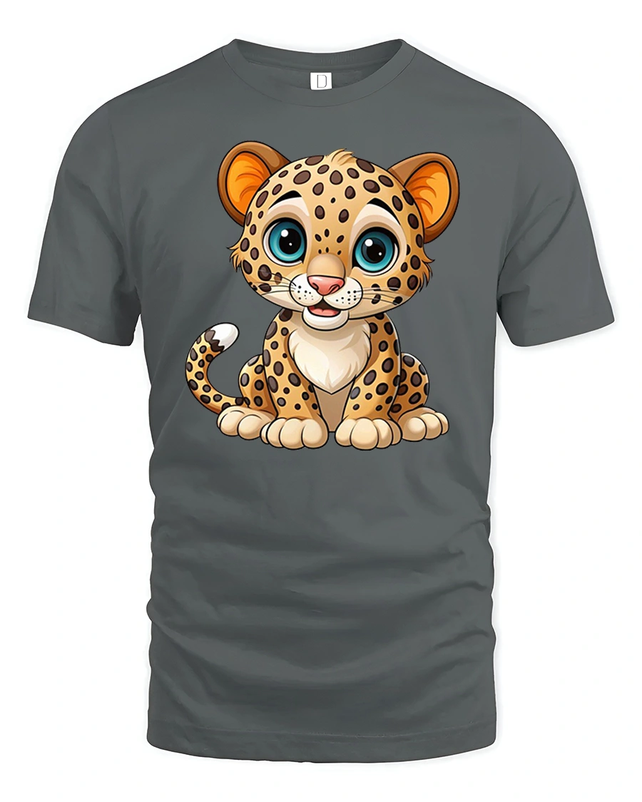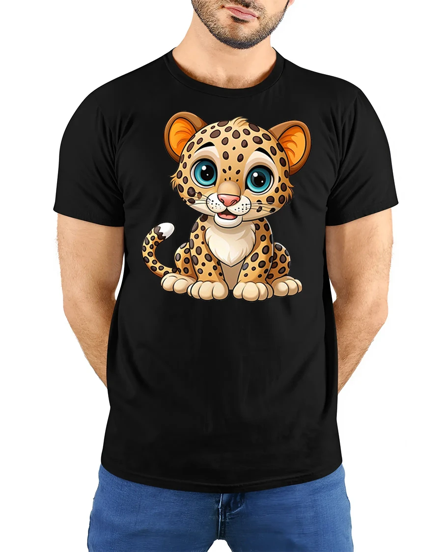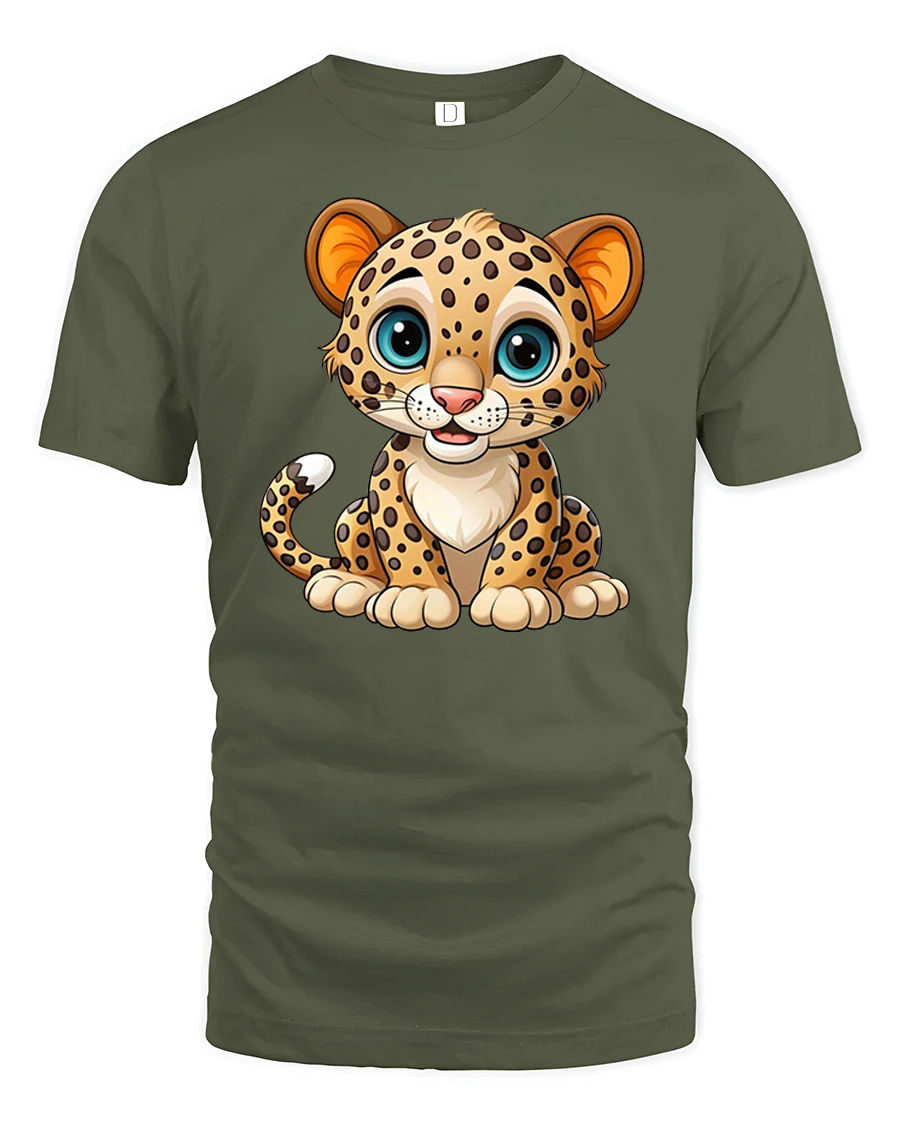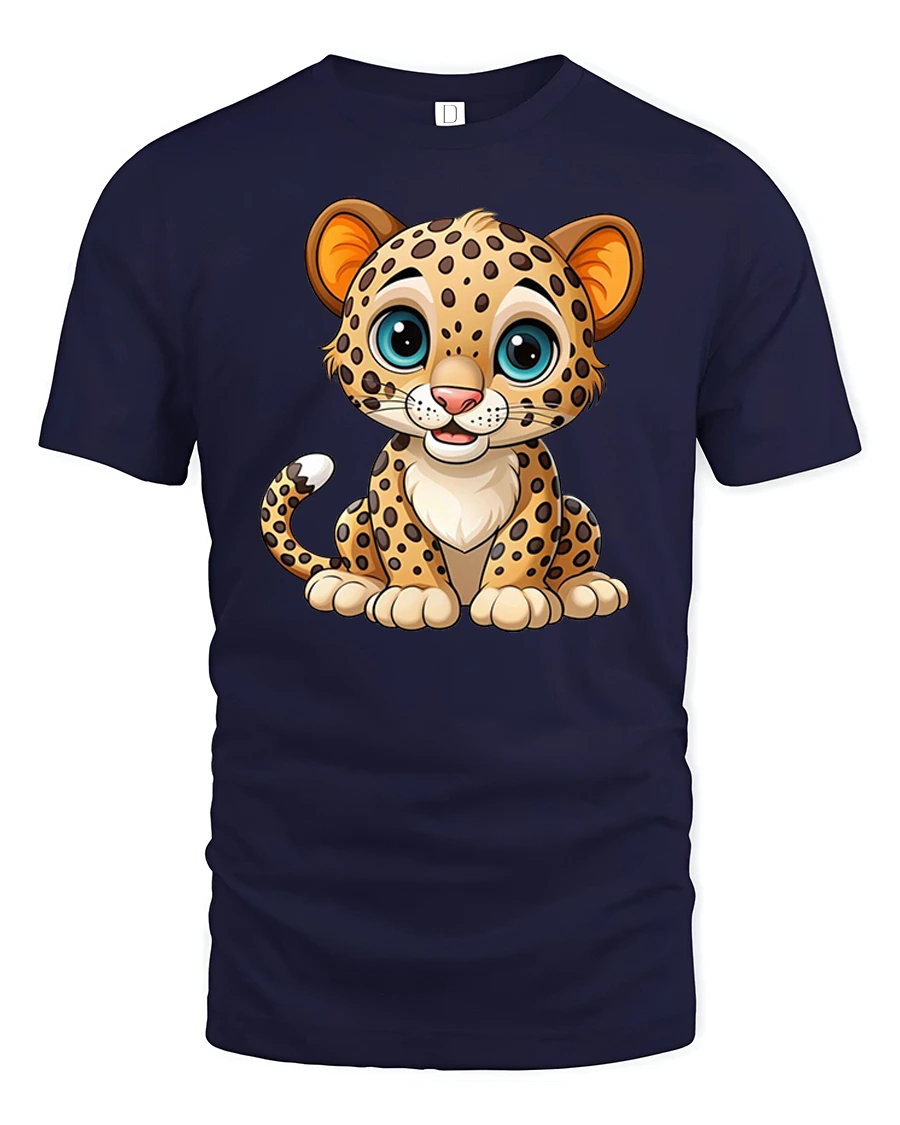 Cute Baby Leopard Cub Graphic Tshirt Adorable Cartoon Art Tee pairs effortlessly with jeans shorts or relaxed casual outfits.