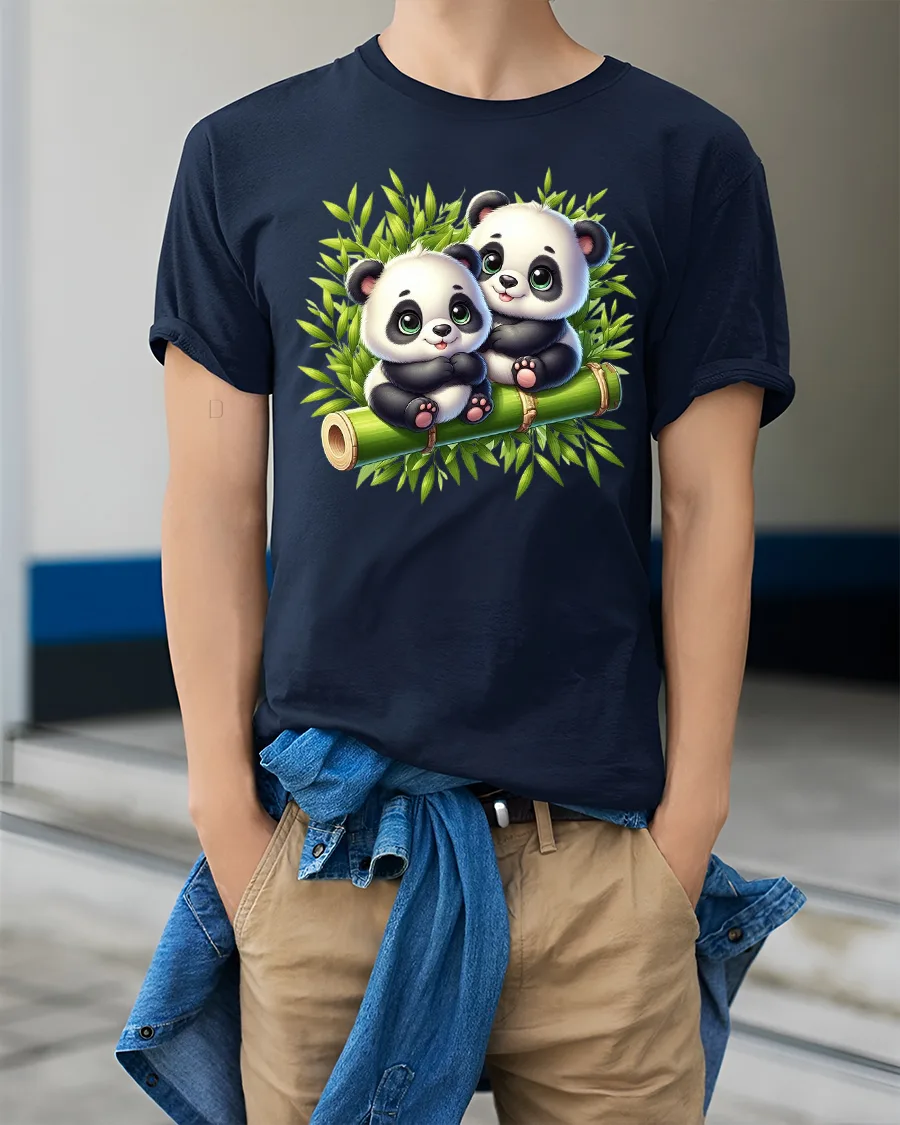 This Cute Baby Panda Duo Tee with Adorable Bamboo Forest Artwork brings irresistible charm to any outfit. Featuring two sweet baby pandas sitting together on a bamboo branch, this design captures the innocence and gentle beauty that panda lovers adore. The lush green leaves, soft shading, and expressive panda faces make the artwork feel warm, lively, and heartwarming.