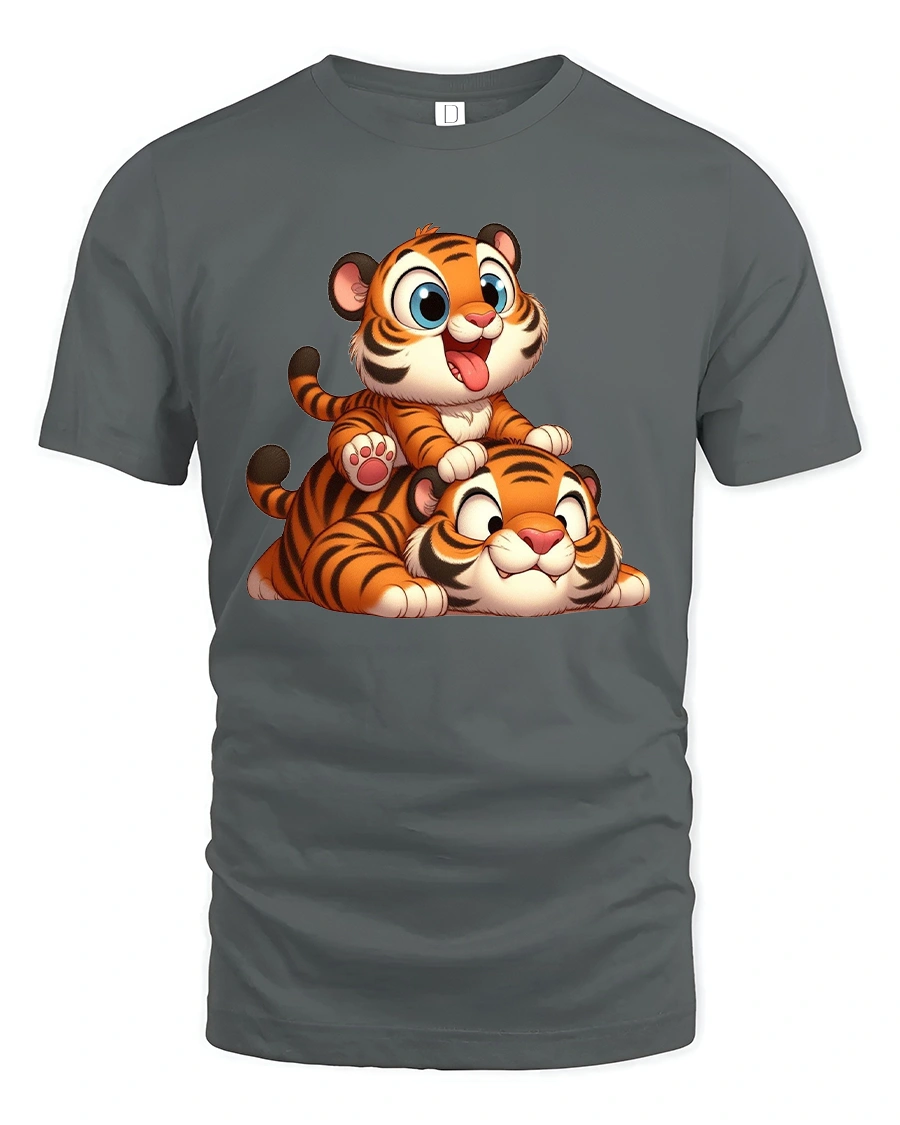 Cute Baby Tiger Stack Playful Cartoon Art Graphic Tee Shirt brings joy charm and lighthearted fun to everyday style.