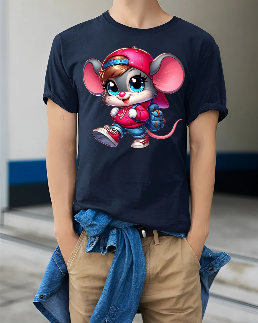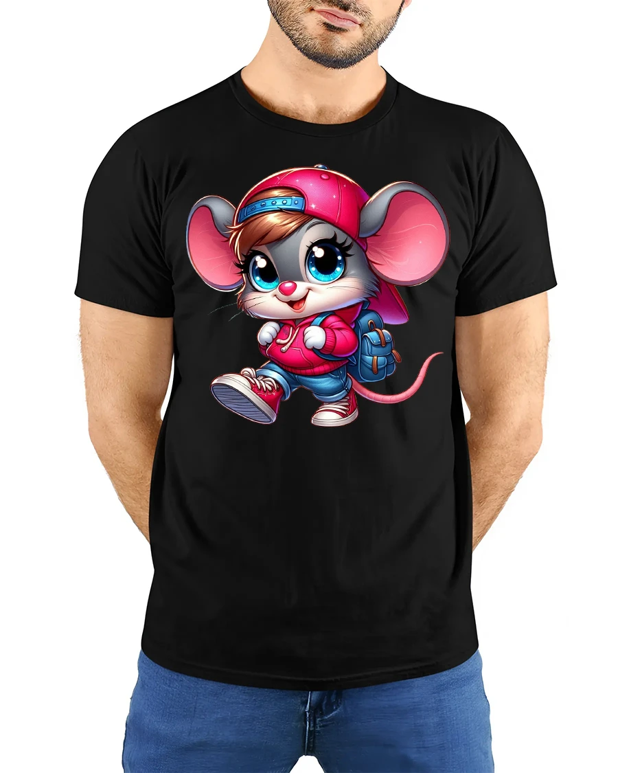 Whether worn on outings relaxing at home or given as a cute surprise gift the Cute Backpack Mouse Streetwear Cartoon Art Graphic T-Shirt delivers a fun artistic style that stands out in a charming way. Its lively design makes it perfect for fans of whimsical animal characters and modern cartoon aesthetics.