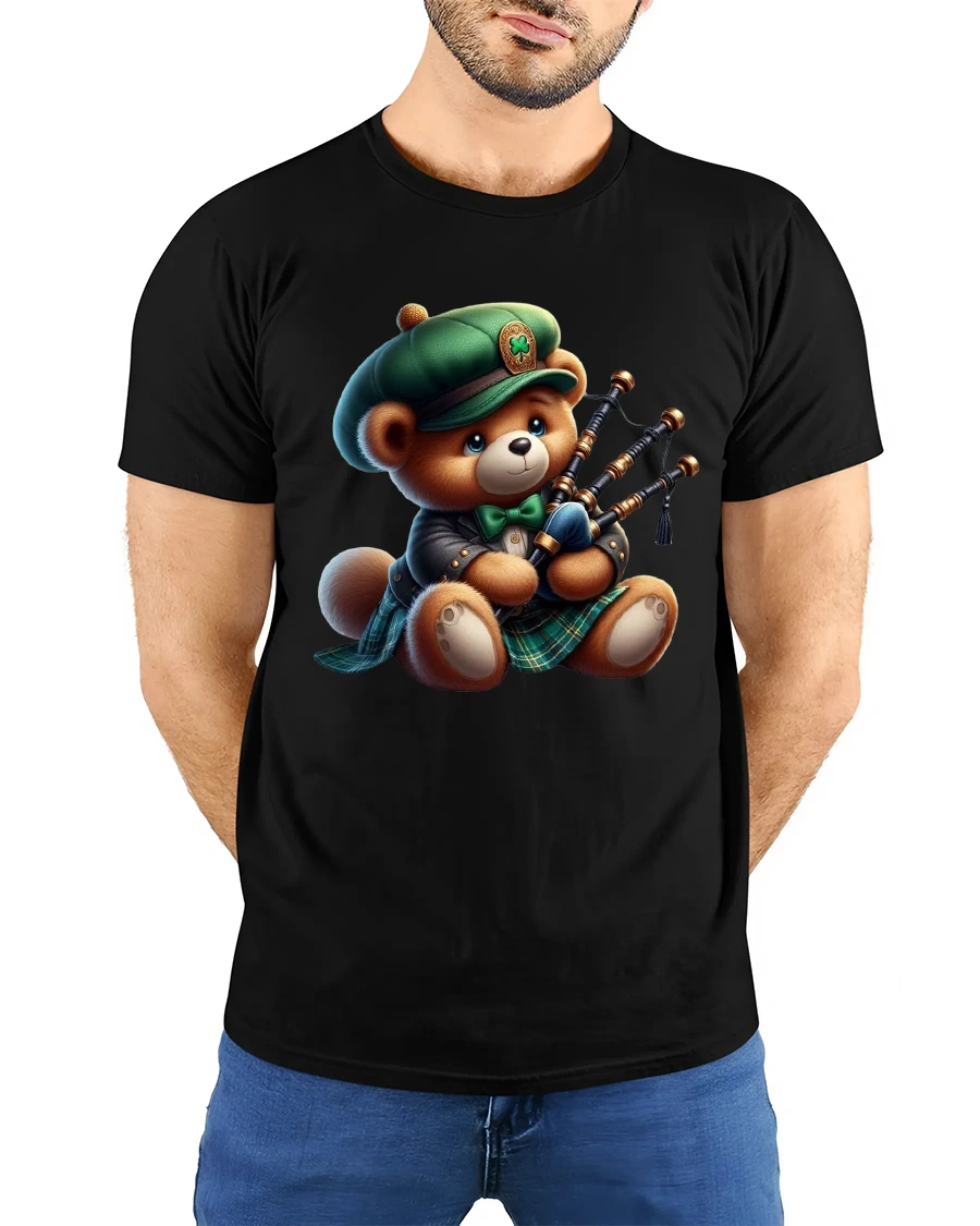 Cute Bagpipe Playing Teddy Bear Graphic Tee With Cozy Charm brings warmth tradition and playful joy to your everyday look.
