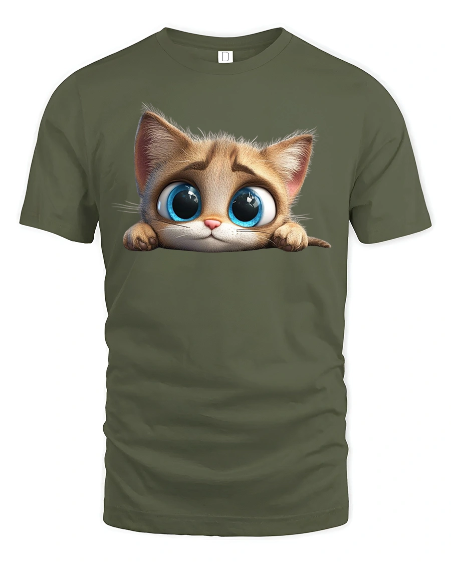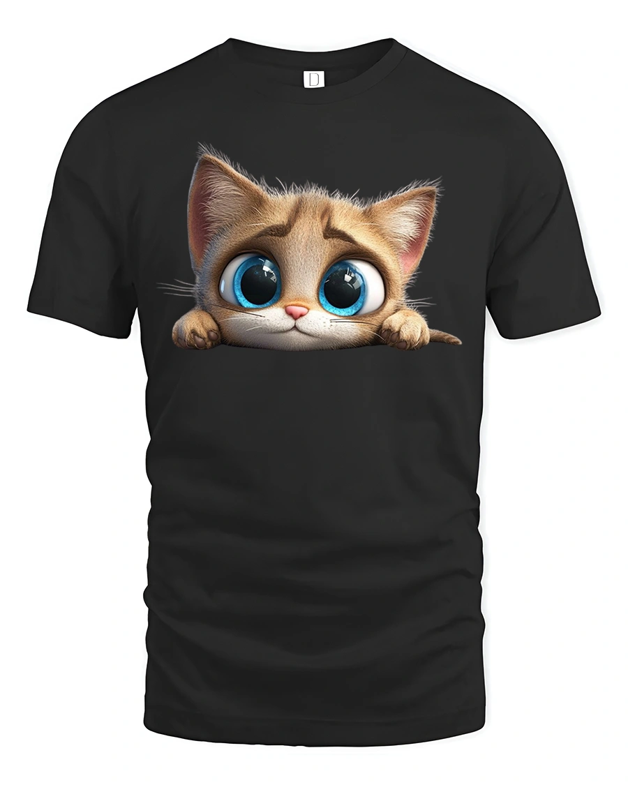 Featuring an adorable kitten with bright blue eyes and a charming, curious face, this tee brings out your playful and loving side.