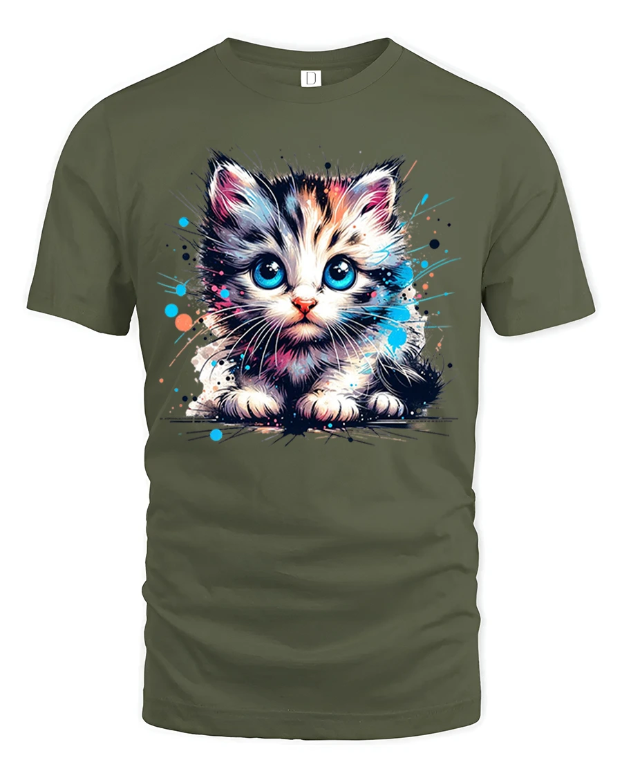 This cute kitten tshirt delivers warmth charm and innocence through artistic detail and playful color.