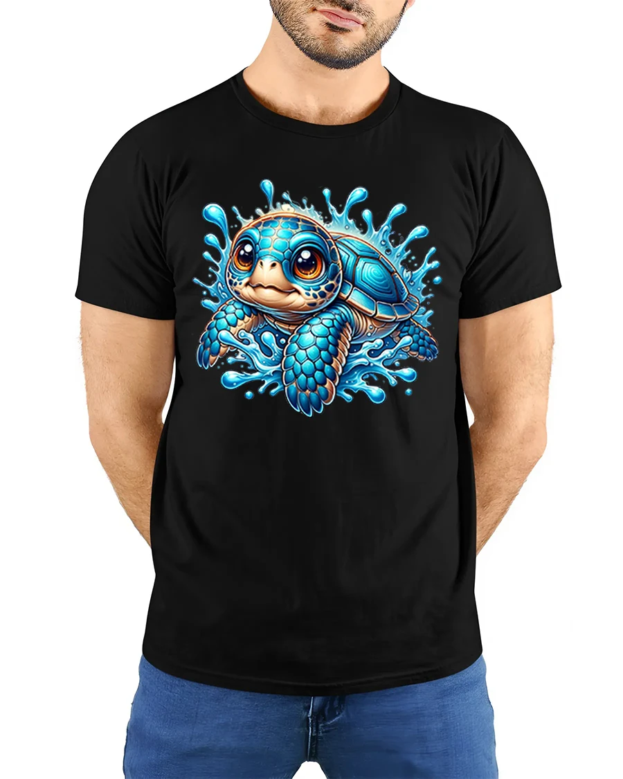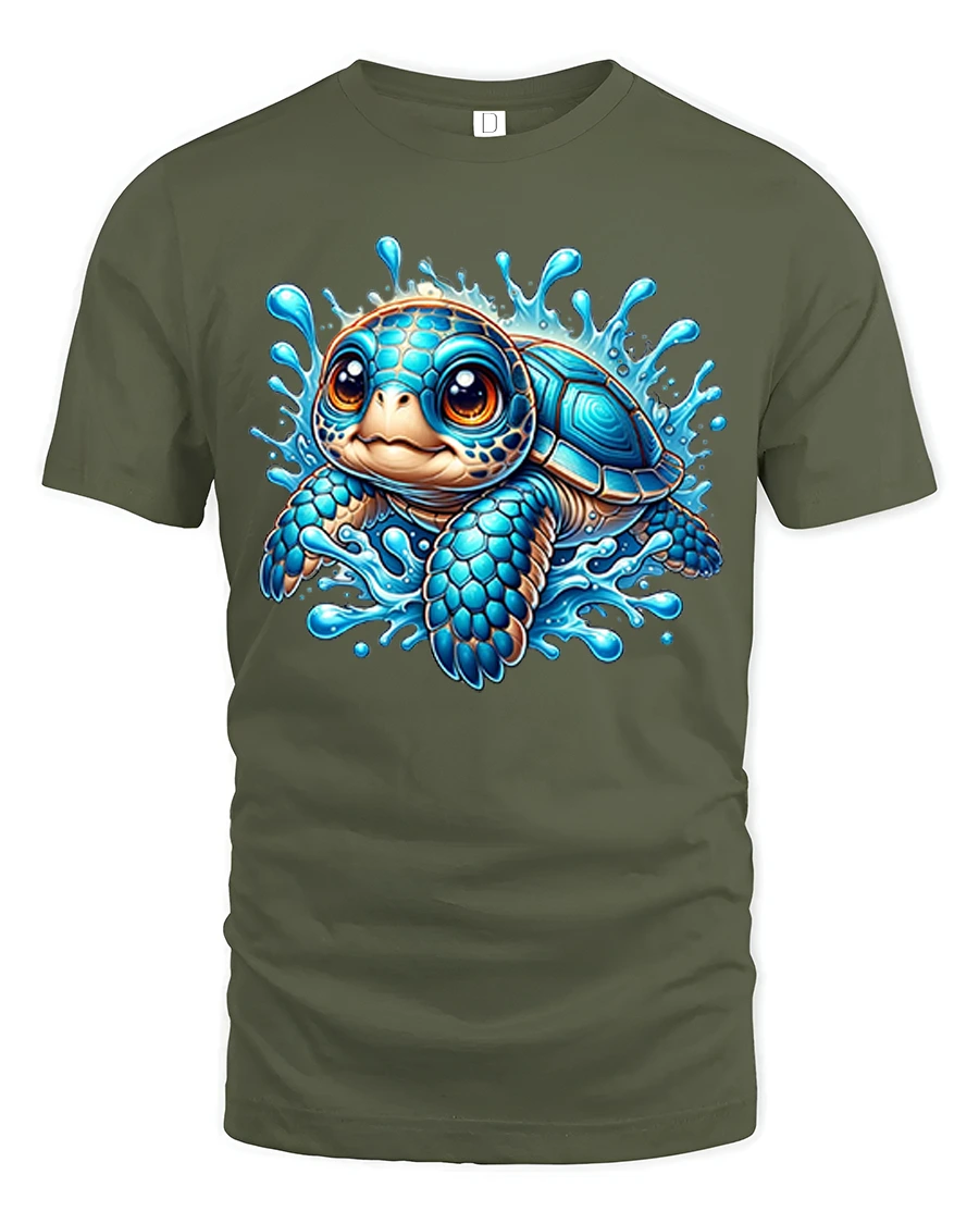 Cute Blue Baby Turtle Splash Art T Shirt brings playful ocean charm to everyday style.