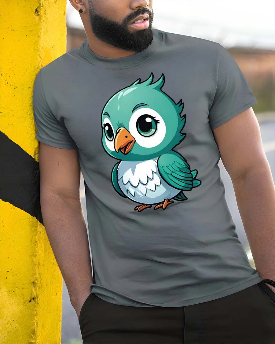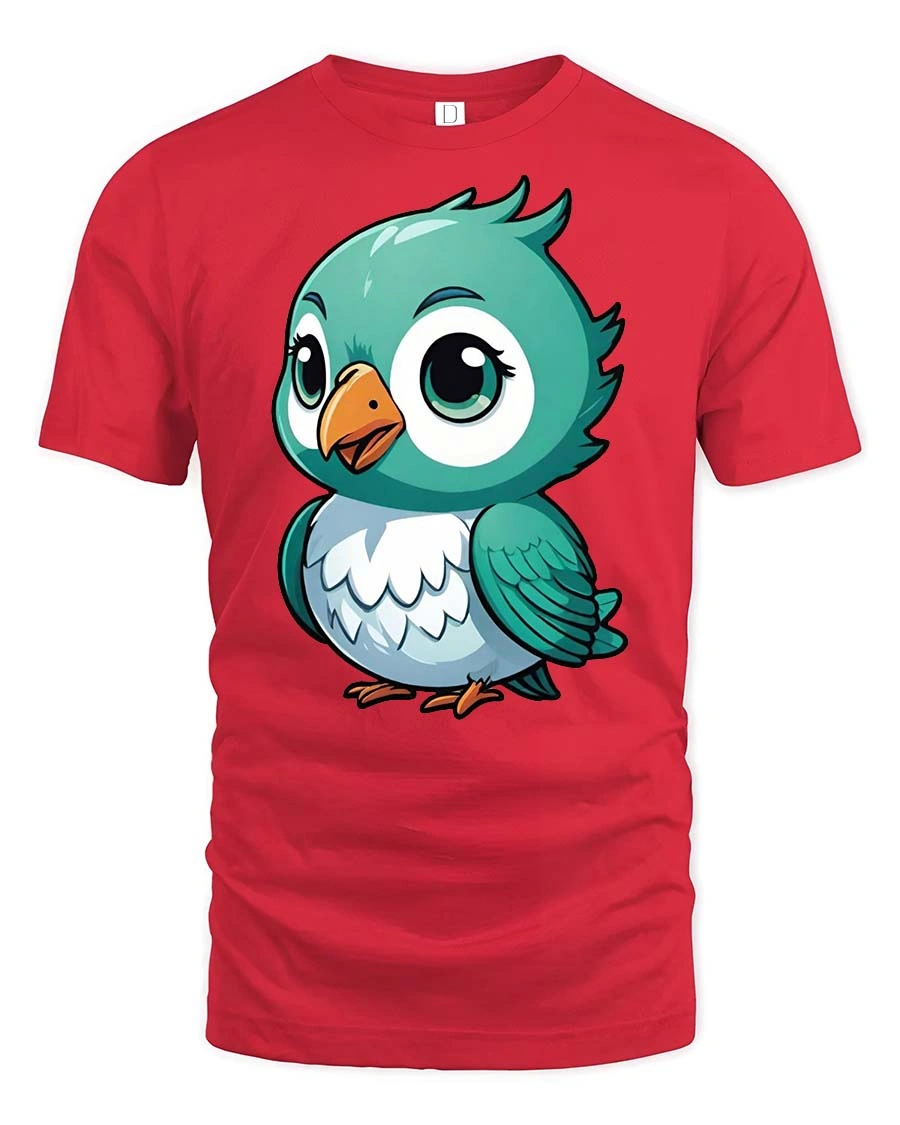 Cute Blue Bird T-Shirt Adorable Cartoon Bird Graphic Tee features a charming little bird with big expressive eyes and a playful cartoon style.