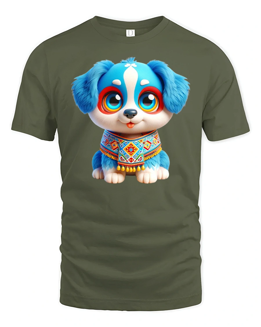 Cute Blue Puppy Art Graphic Tee With Big Eyes and Happy Vibes brings instant joy with its charming and heartwarming design.