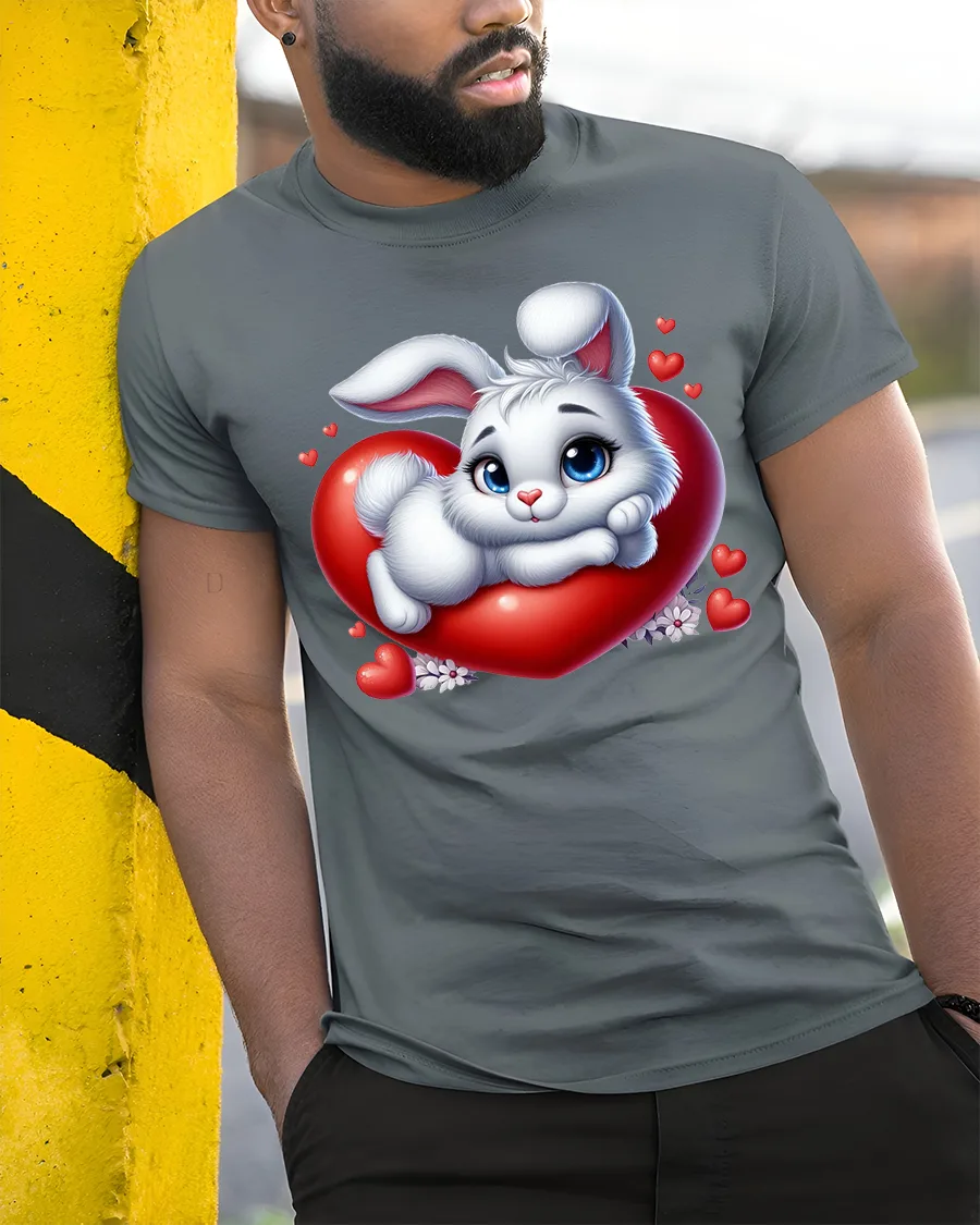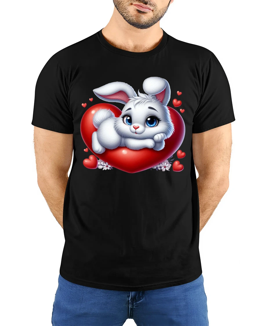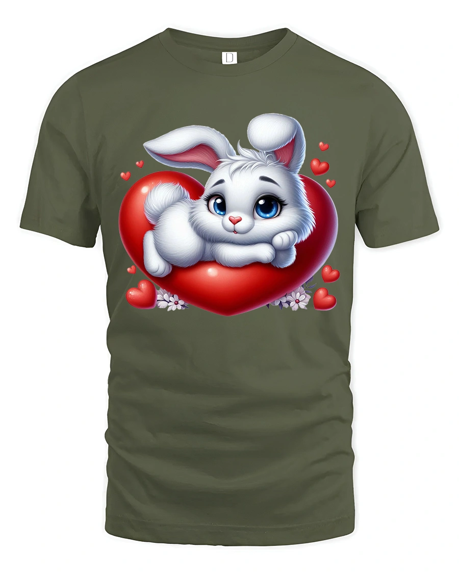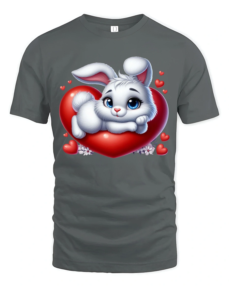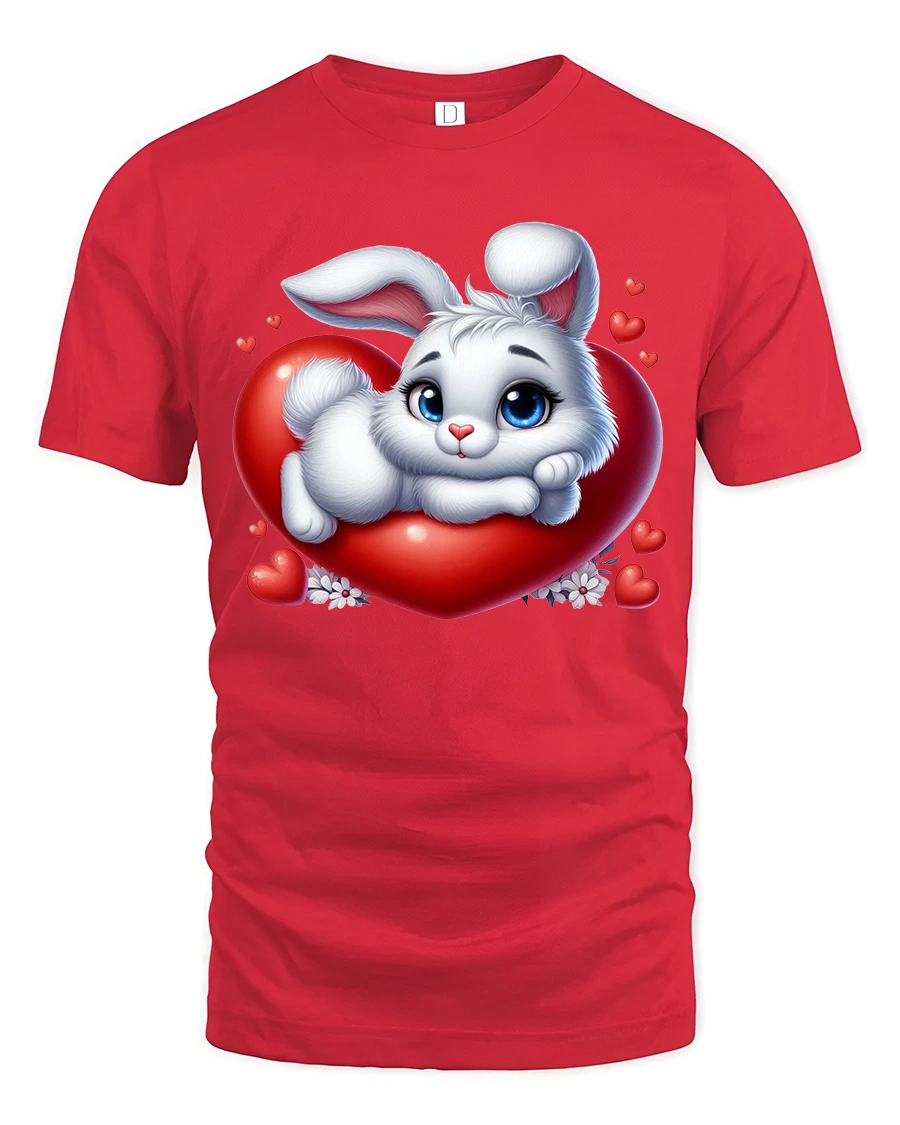 Cute Bunny Heart Love Graphic Tee Shirt brings warmth and charm with an adorable bunny resting on a bright heart.