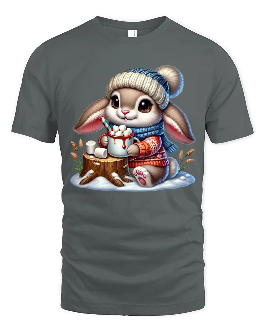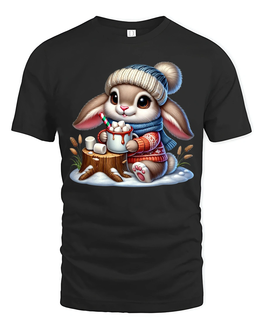 The Cute Bunny Hot Cocoa Winter Cartoon Art TShirt brings a warm and cozy feeling to your everyday style.
