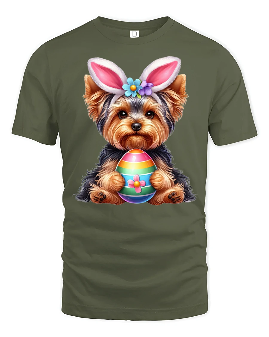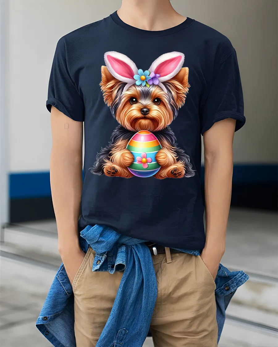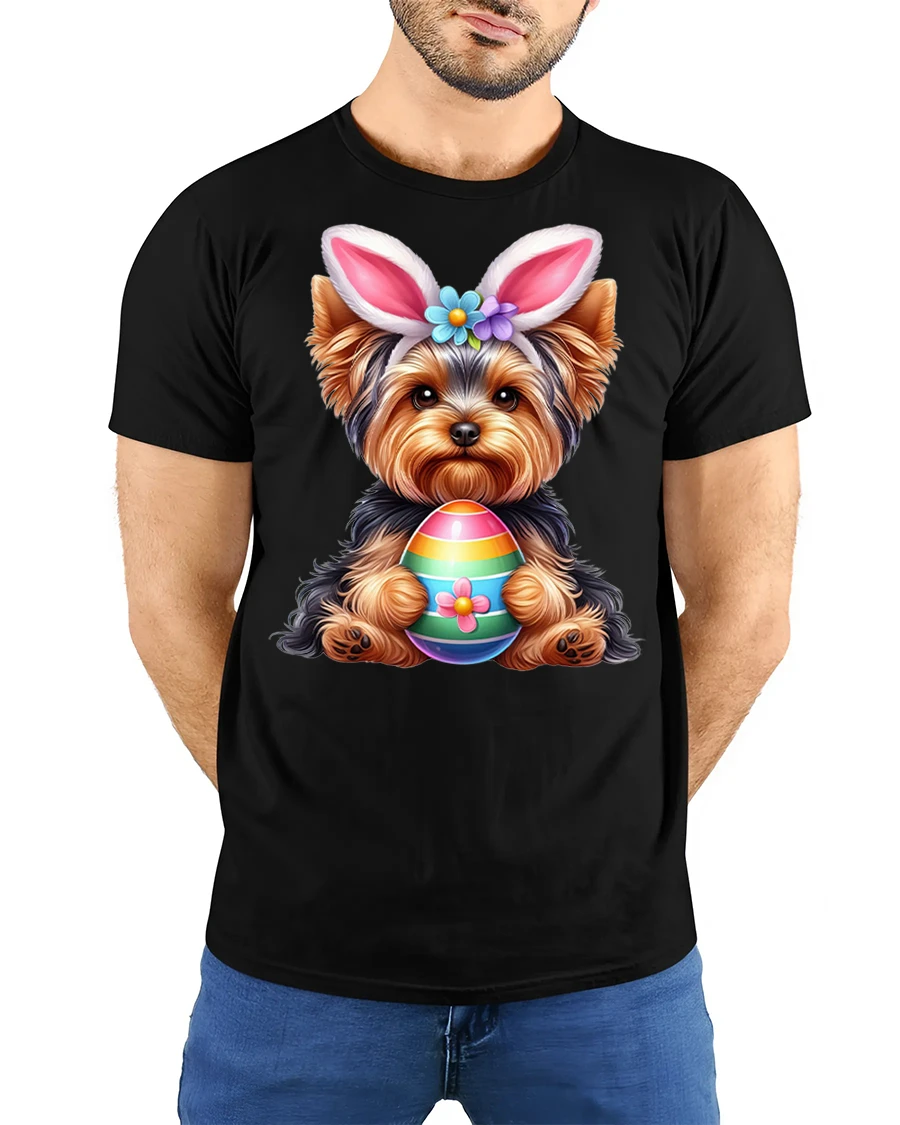Cute Bunny Puppy Holding Colorful Egg Graphic T Shirt is perfect for anyone who loves cute animals and joyful artwork.