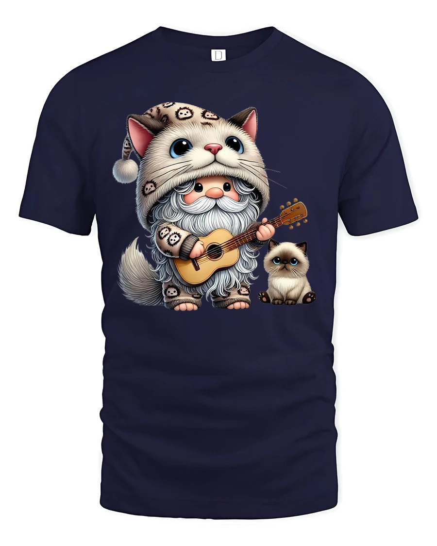 Cute Cat Gnome Guitar T-Shirt - navy t-shirt on white background