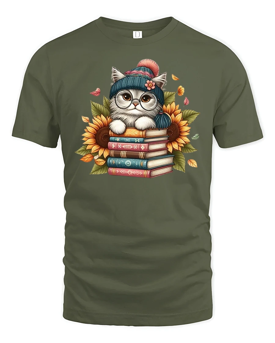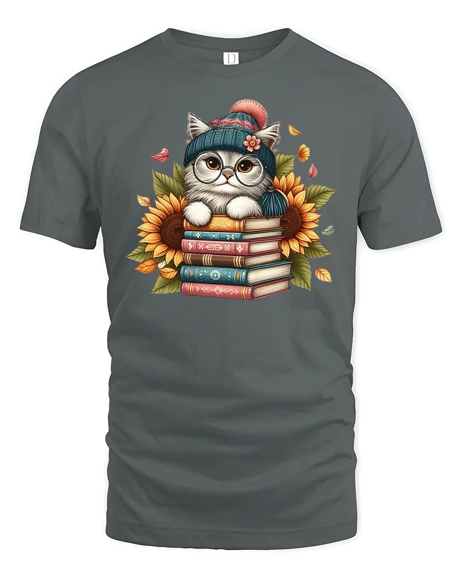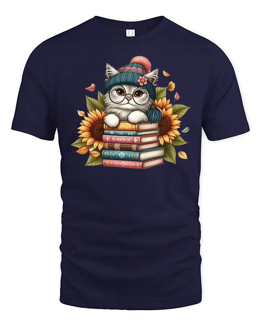 SKU: IMPD0511a2-1 Category: Animals & Pets Lover Tags: artistic cat tee, autumn cat tee, book lover shirt, book stack shirt, bookworm t-shirt, cat and books tee, cat gift idea, cat graphic tee, cat lover t-shirt, cat owner shirt, cat t-shirt, cozy cat shirt, cute animal shirt, cute cat tee, fall aesthetic shirt, kitty t-shirt, librarian shirt, reading lover tee, sunflower cat shirt, vintage style cat shirt