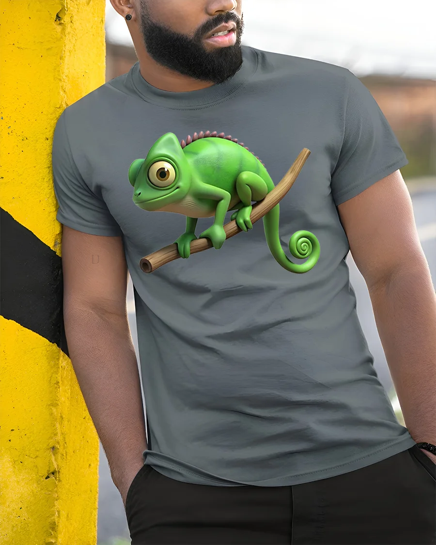 Cute Chameleon Branch Sitting Funny Animal Graphic T Shirt pairs effortlessly with jeans shorts or relaxed streetwear.