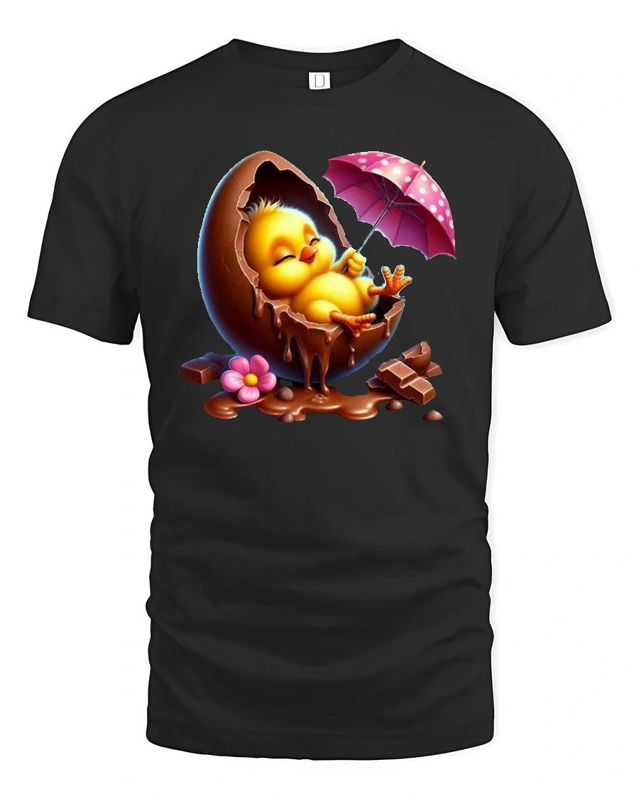Cute Chick In Chocolate Egg Funny Easter T-Shirt is the sweetest way to celebrate spring and Easter joy.