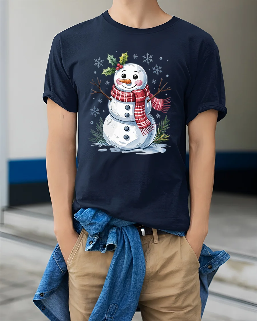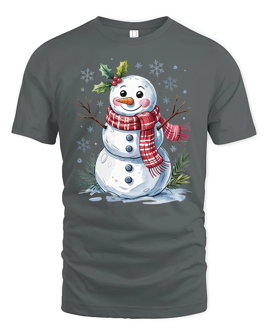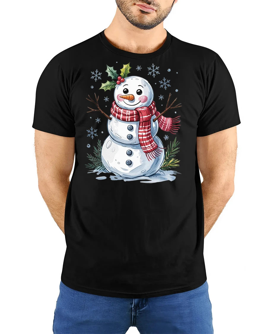 The tee features a bright, friendly snowman with holly accents and playful snowy details, giving it a classic winter look that appeals to both kids and adults. Whether you’re building snowmen, decorating for Christmas, or simply enjoying cozy nights indoors, this tshirt adds a touch of whimsy and happiness to your holiday style.