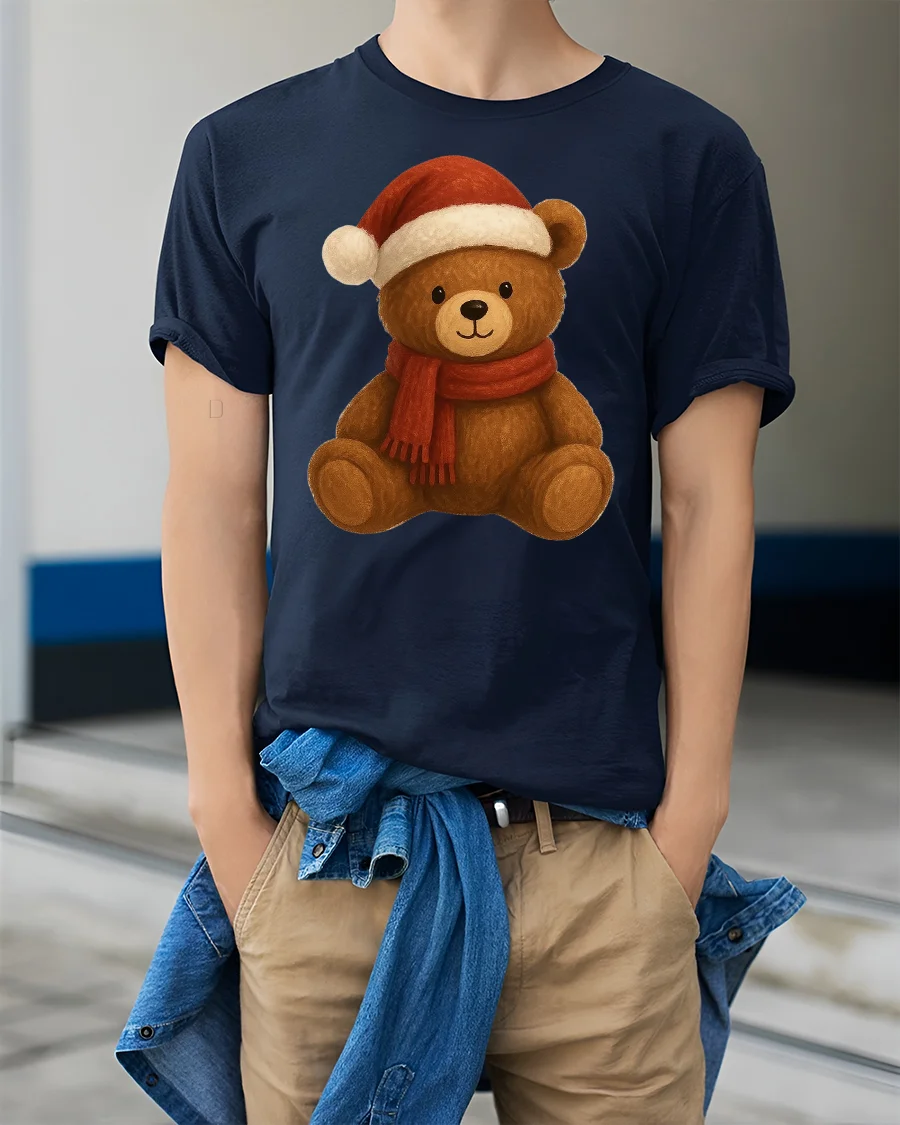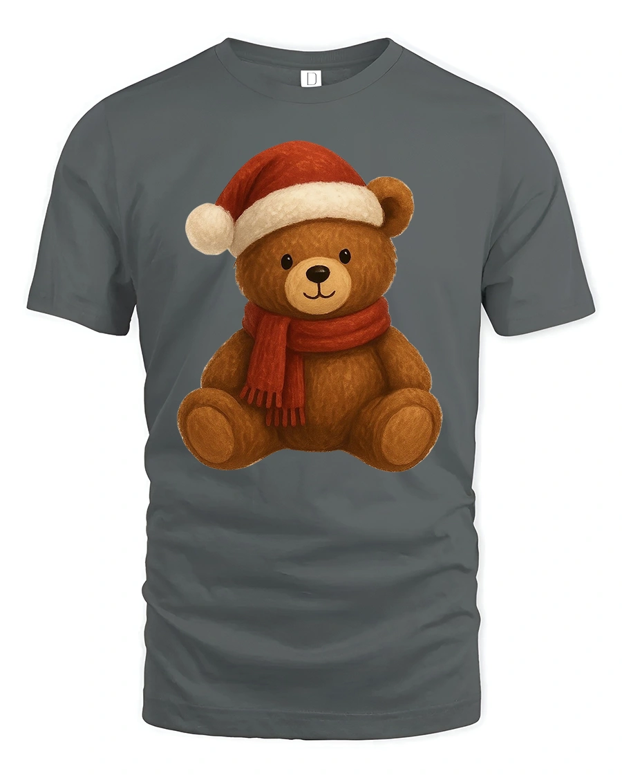 Crafted with soft and comfortable fabric, this tee is ideal for seasonal celebrations, family gatherings, and cozy winter moments. The high-quality print stays crisp and vibrant, ensuring the teddy bear’s warm colors and cute expression remain delightful through every wash. Its simple yet lovable design makes it perfect for all ages and easy to pair with casual holiday outfits.
