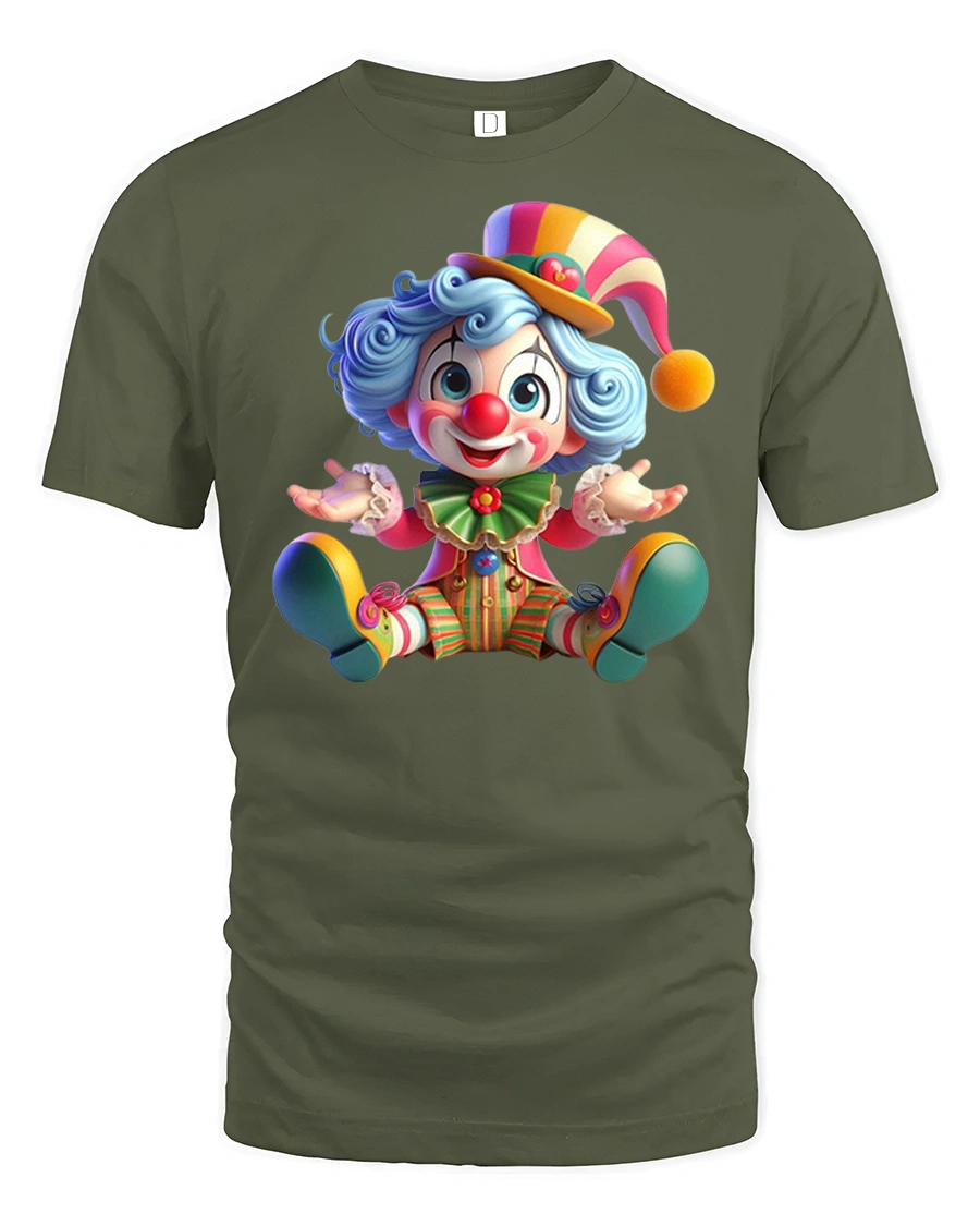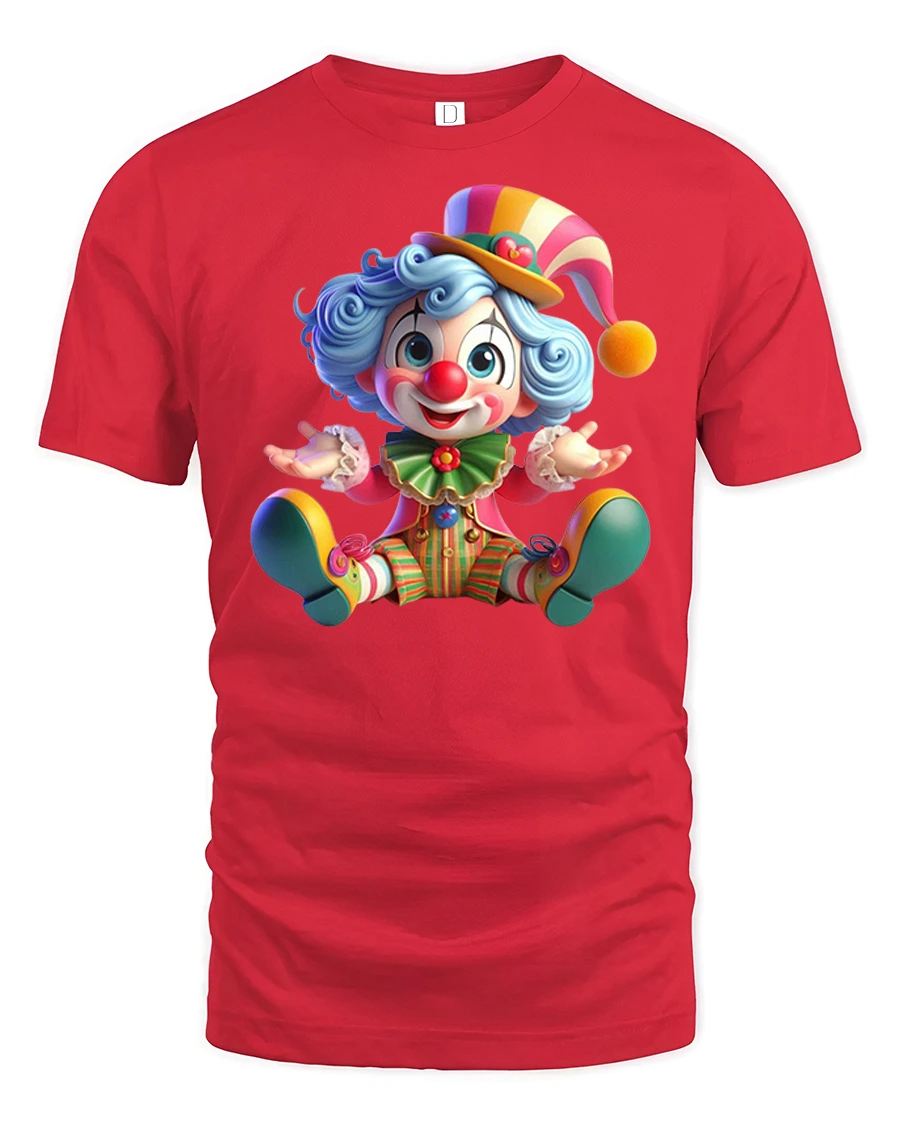 Cute Colorful Cartoon Clown Graphic T Shirt brings laughter joy and playful personality into a vibrant design.