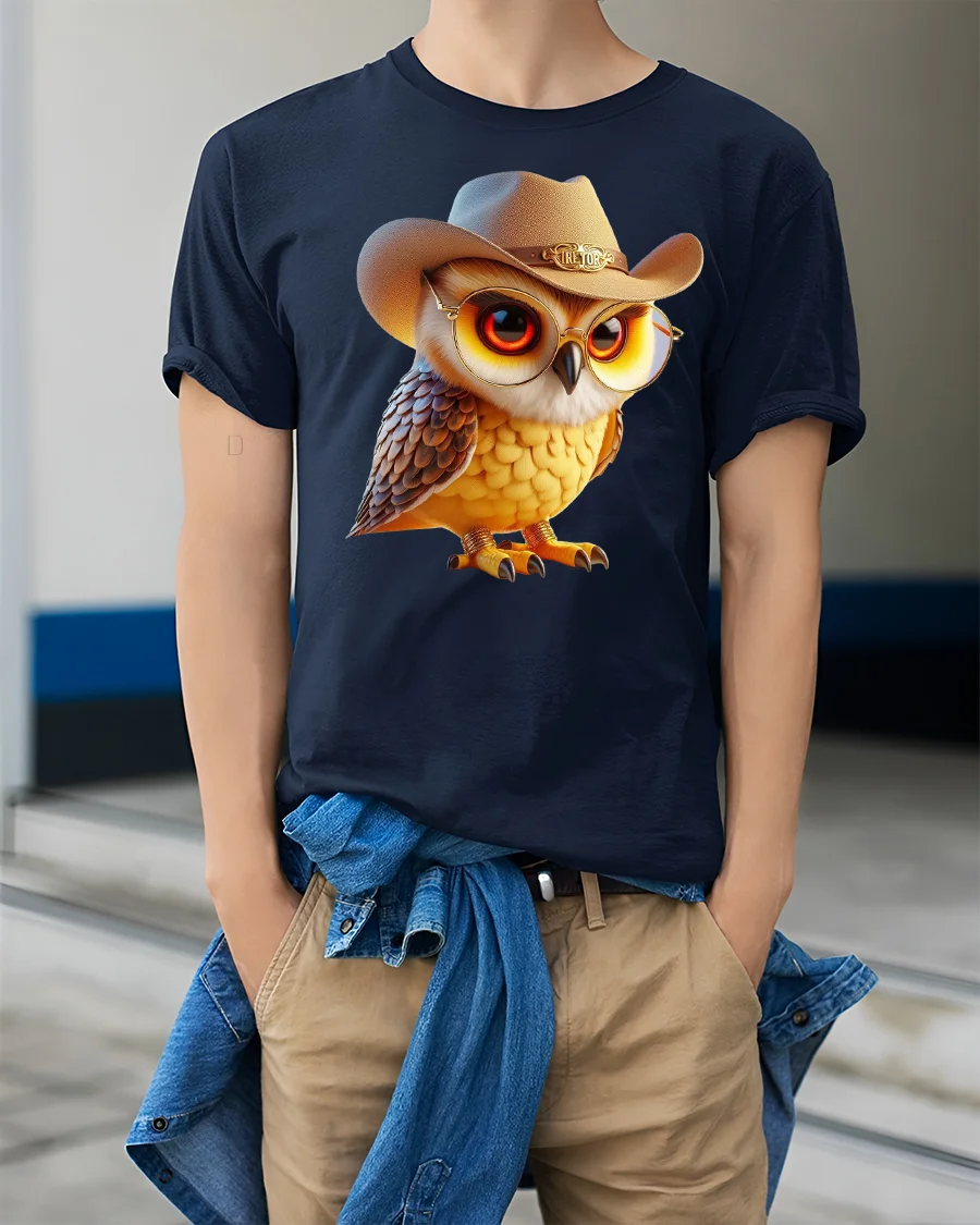 Cute Cowboy Owl Western Country Style Graphic T-Shirt adds a charming and humorous touch to any casual outfit. Featuring an adorable owl wearing a cowboy hat and glasses, this tee blends western flair with cute cartoon style for a design that stands out instantly.