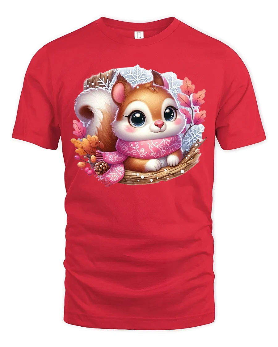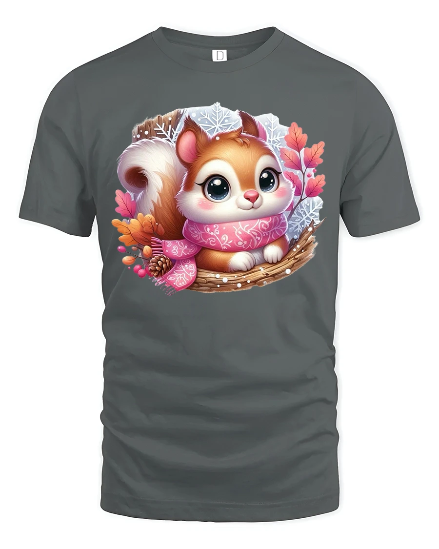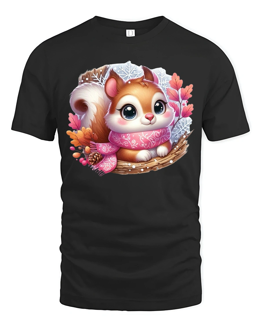 Bring a touch of comfort and cuteness to your style with this charming squirrel tee that celebrates the warmth and beauty of the autumn-winter season.