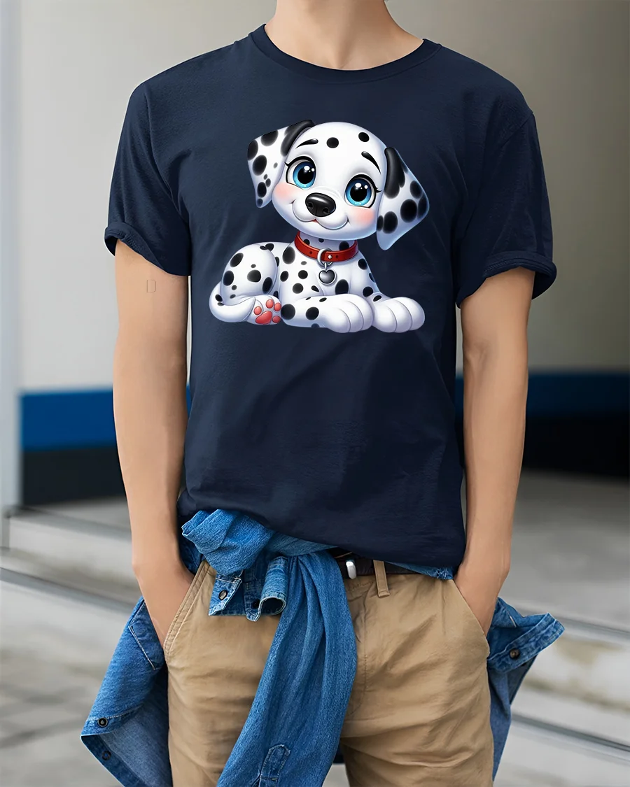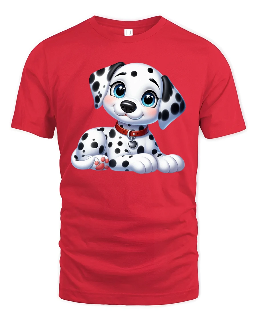 The Cute Dalmatian Puppy Cartoon Graphic T Shirt with Sweet Happy Style brings joy and gentle charm to everyday fashion.