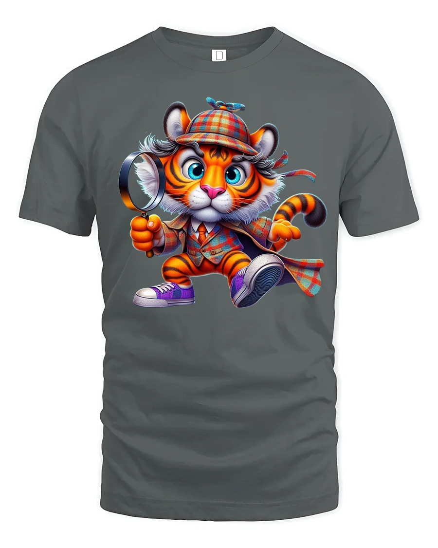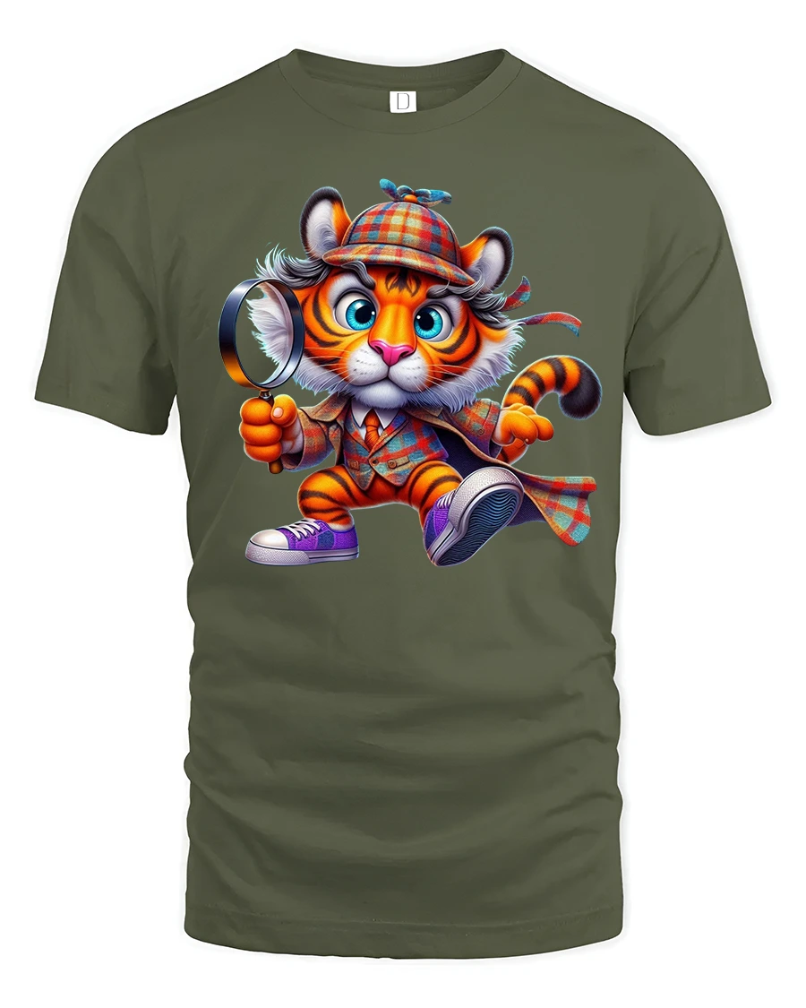 Crafted from soft and comfortable material, this t-shirt is great for everyday wear, themed events, family outings, or simply adding a bit of humor to your casual style. The high-quality print captures every detail—from the tiger’s wide eyes to the patterned detective coat—ensuring a crisp and eye-catching look that stands out. It also makes a wonderful gift for kids, animal lovers, or anyone who appreciates cute and clever artwork.