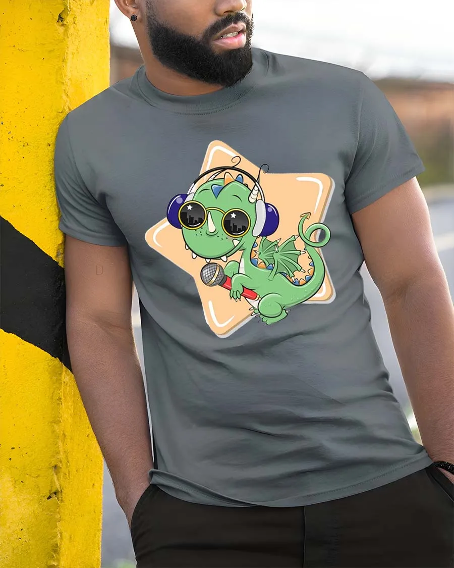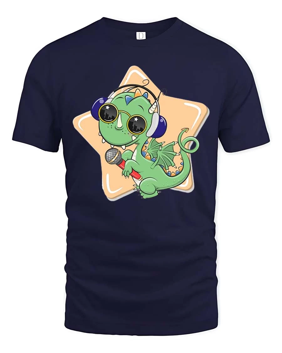 With its cute expression and cool performer vibe, the dragon character adds personality and charm to the graphic. The star-shaped background and bright illustration make the design stand out while keeping a fun and lighthearted feel perfect for casual wear.