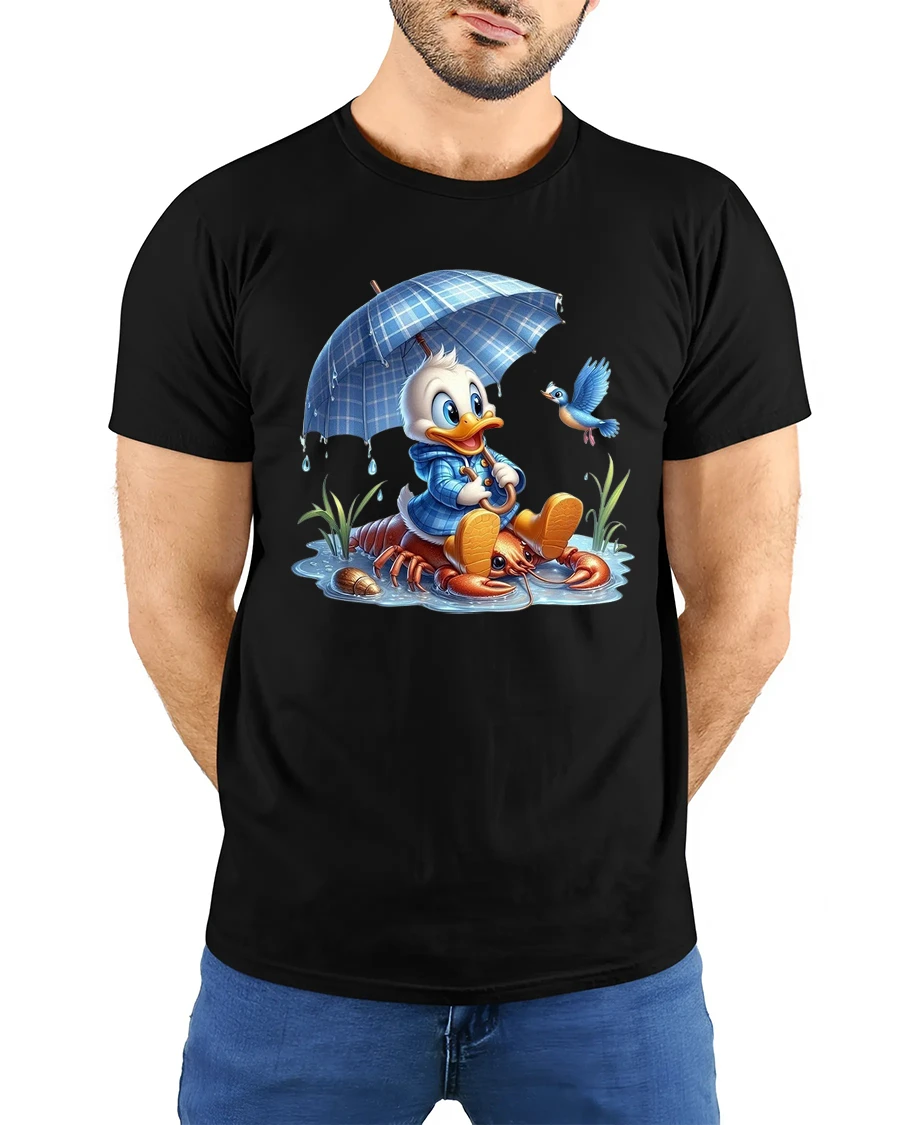 Cute Duck Under Umbrella Tee Adorable Rainy Day Cartoon Art captures a heartwarming scene filled with charm and playful imagination.
