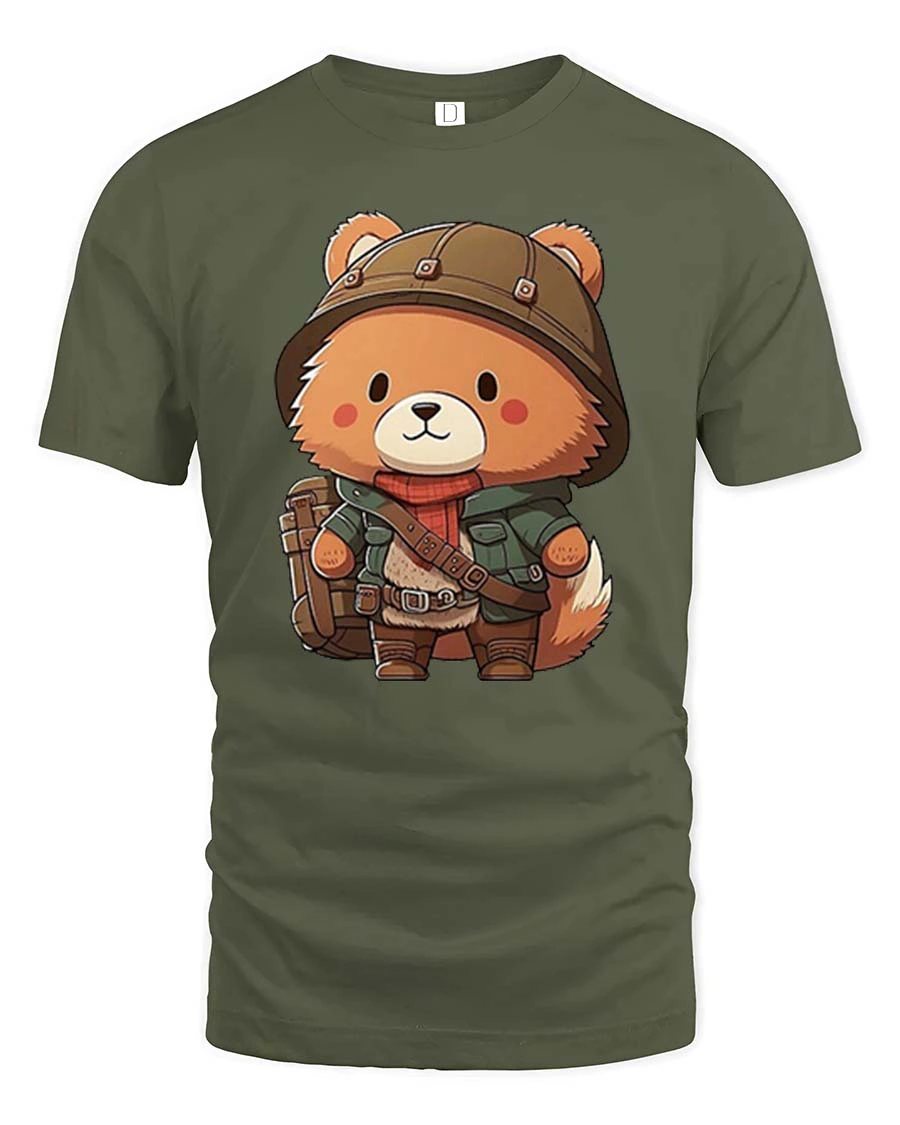Cute Explorer Bear Cartoon Graphic T-Shirt features an adorable little bear dressed for adventure, ready to explore the great outdoors. With a charming helmet, scarf, backpack, and explorer outfit, this cute bear t-shirt captures the spirit of curiosity and fun in a playful cartoon style. The soft colors and friendly design make it perfect for anyone who loves animals and adventure themes.