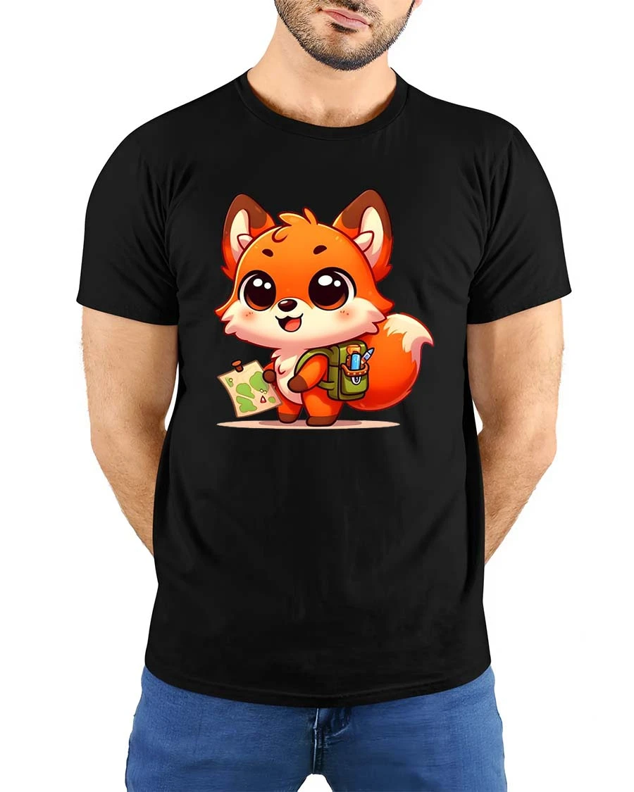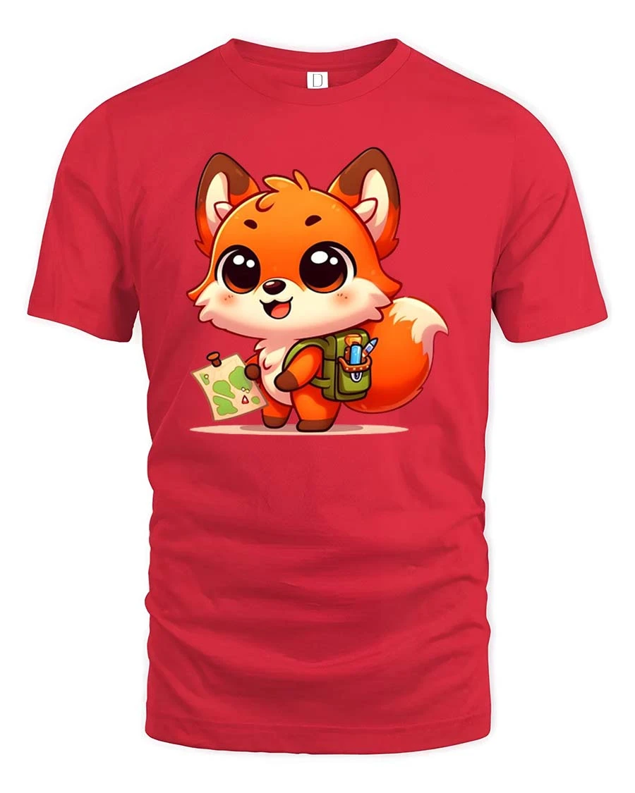 Featuring an adorable fox character with a backpack and map, this t-shirt captures the spirit of exploration and curiosity.