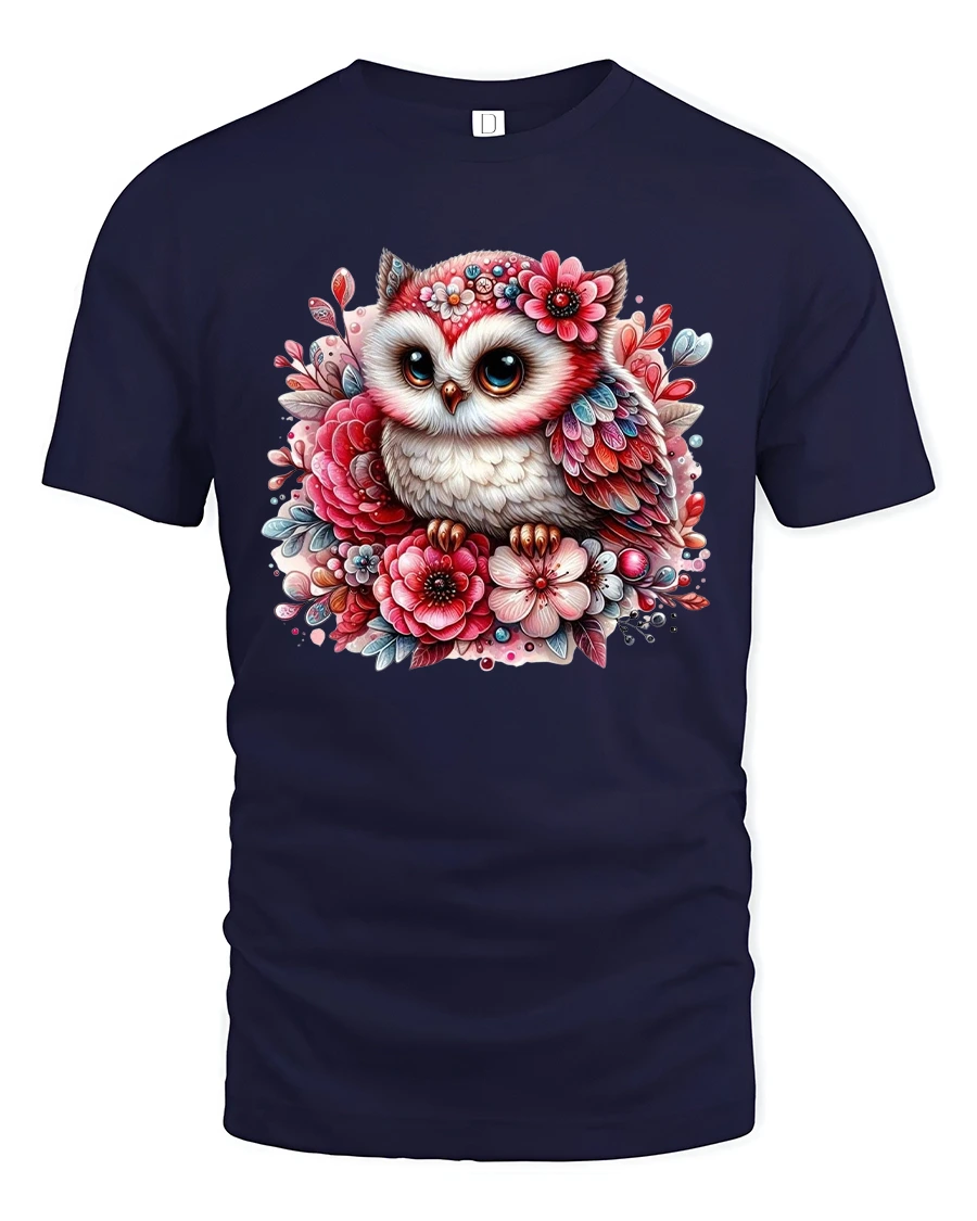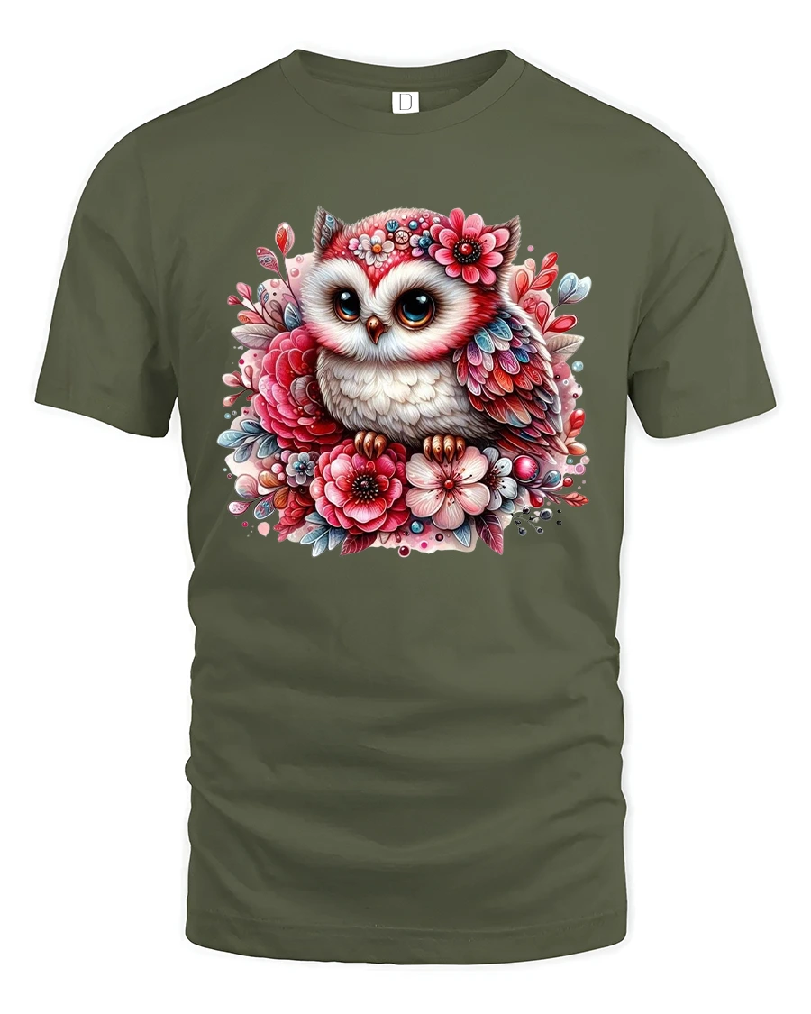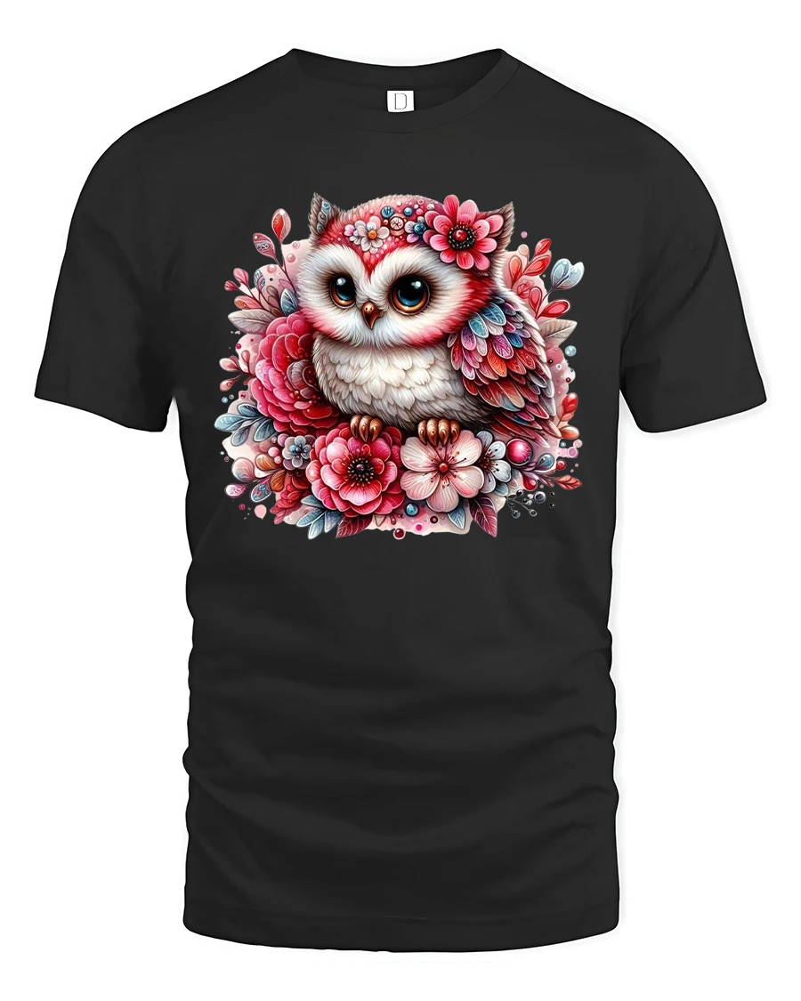 The Cute Floral Owl Art Graphic T Shirt with Whimsical Garden Style brings softness, beauty, and charm into everyday fashion.