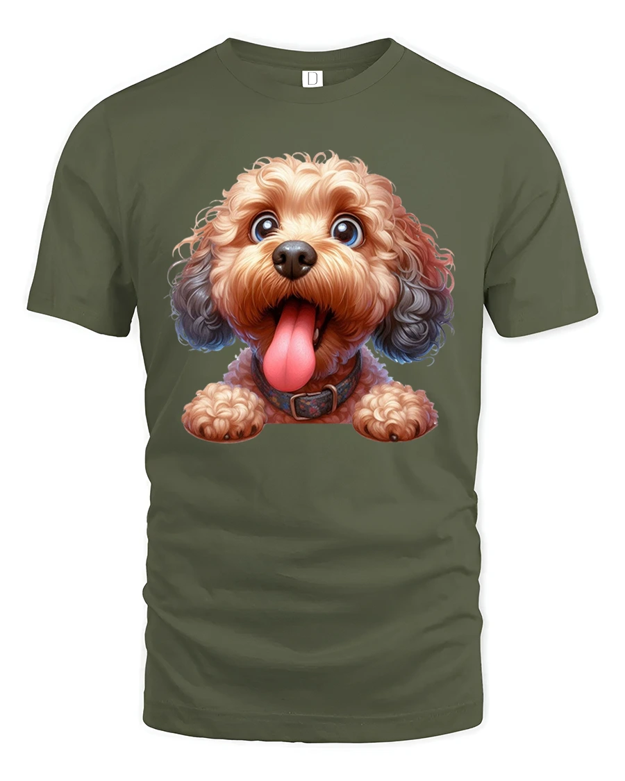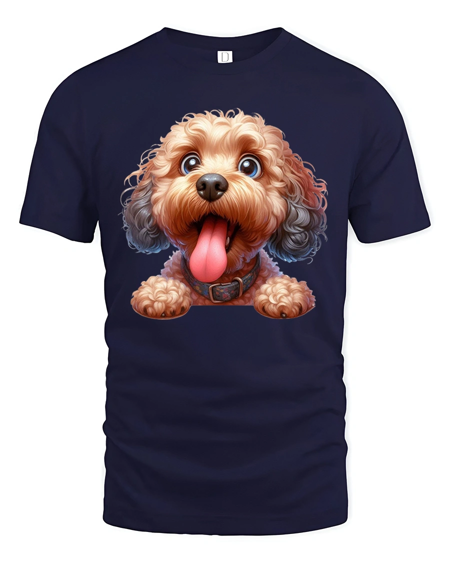 This cute doodle dog graphic tee features an adorable fluffy puppy with big sparkling eyes and a joyful tongue out expression that melts hearts.