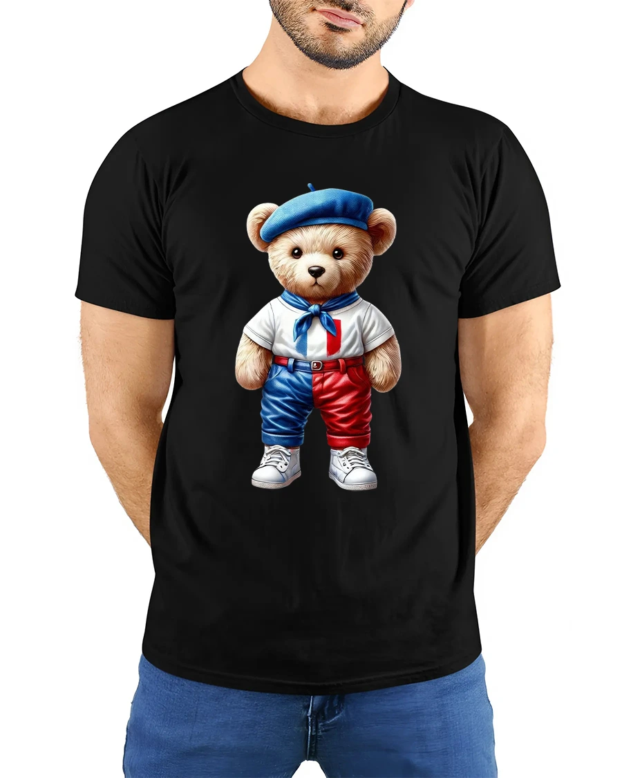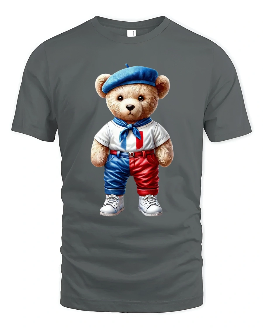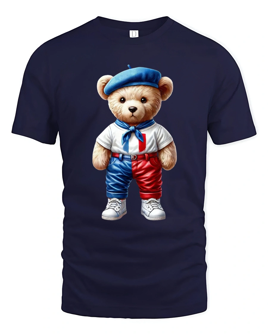 Cute French Teddy Bear Graphic Tee delivers irresistible charm with a stylish teddy bear dressed in classic French inspired fashion.
