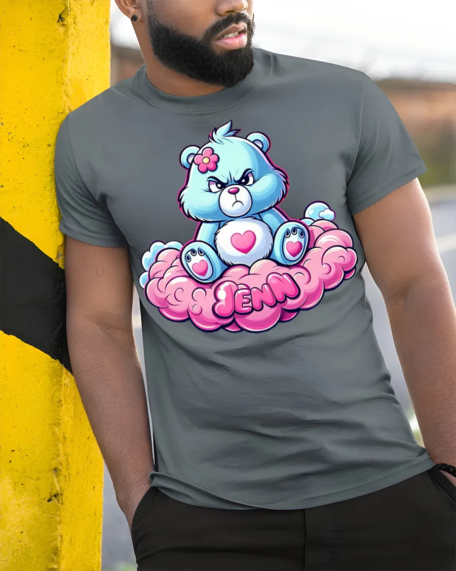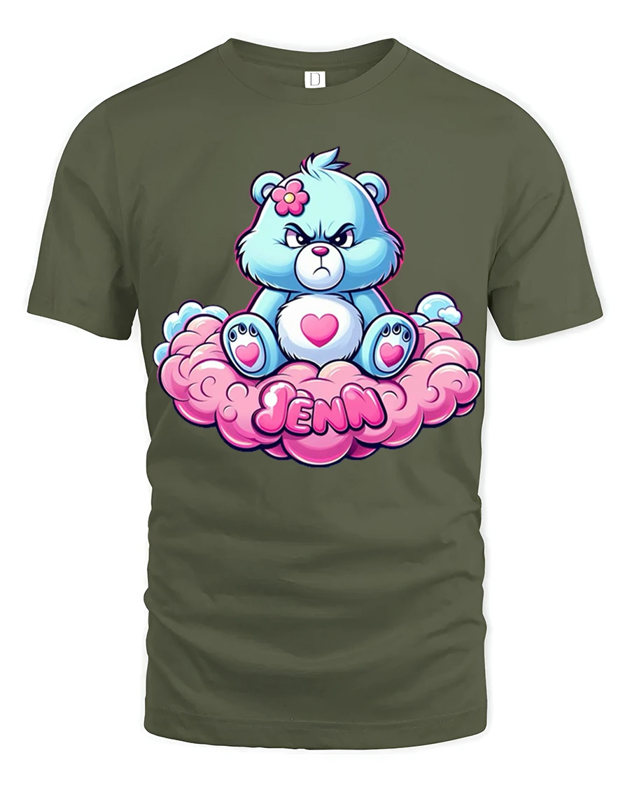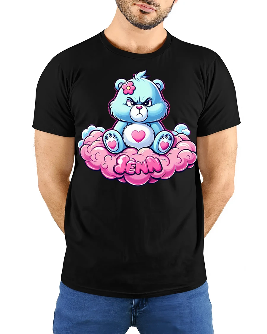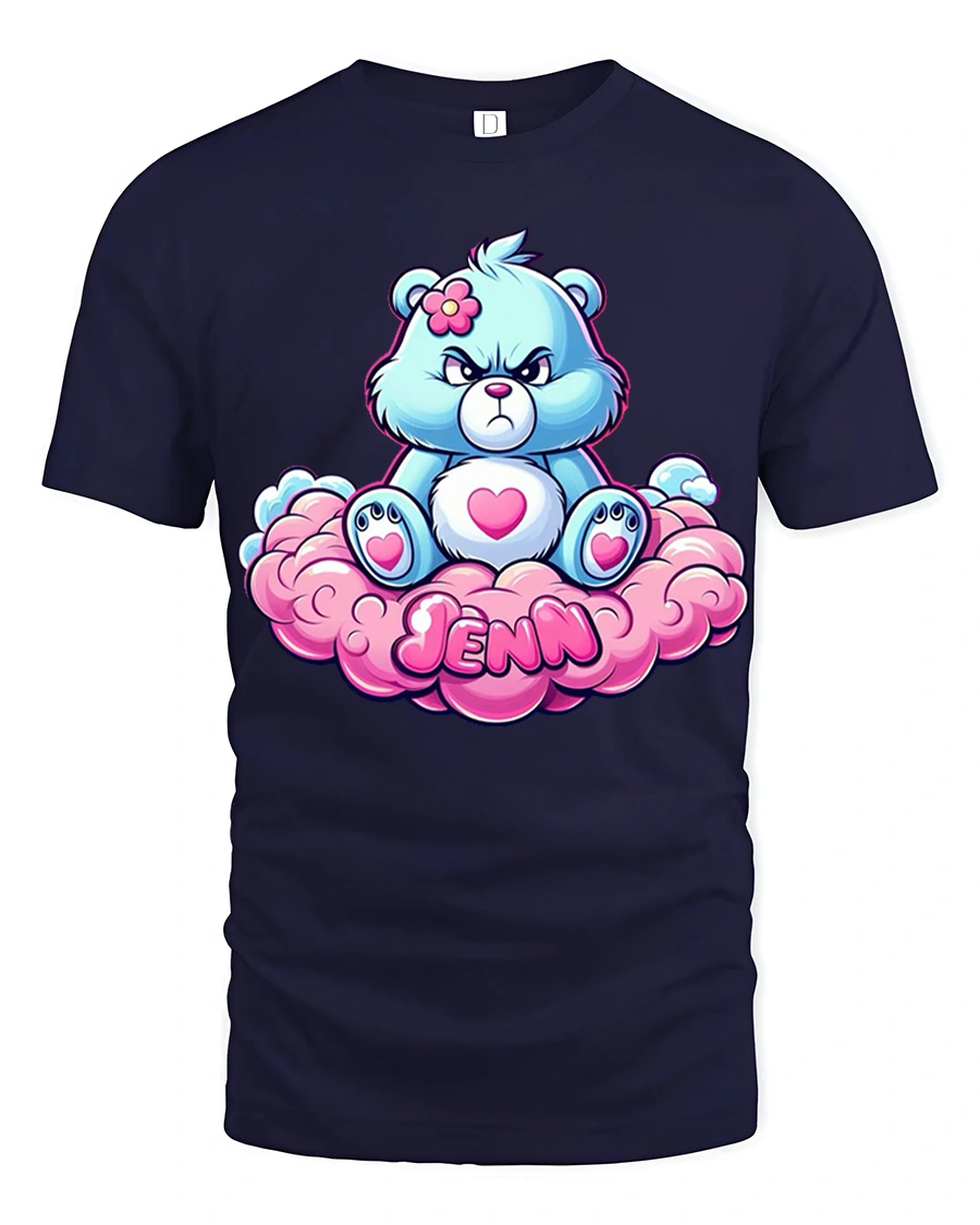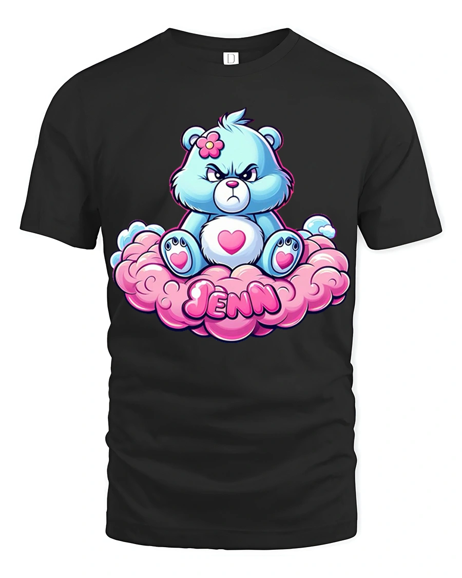 Cute Grumpy Bear Sitting On Cloud Jenn Name Graphic Tee brings playful charm and attitude into one adorable design.