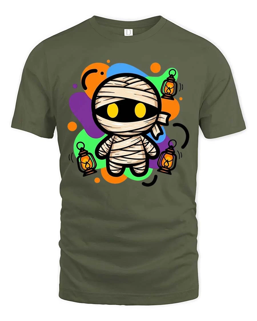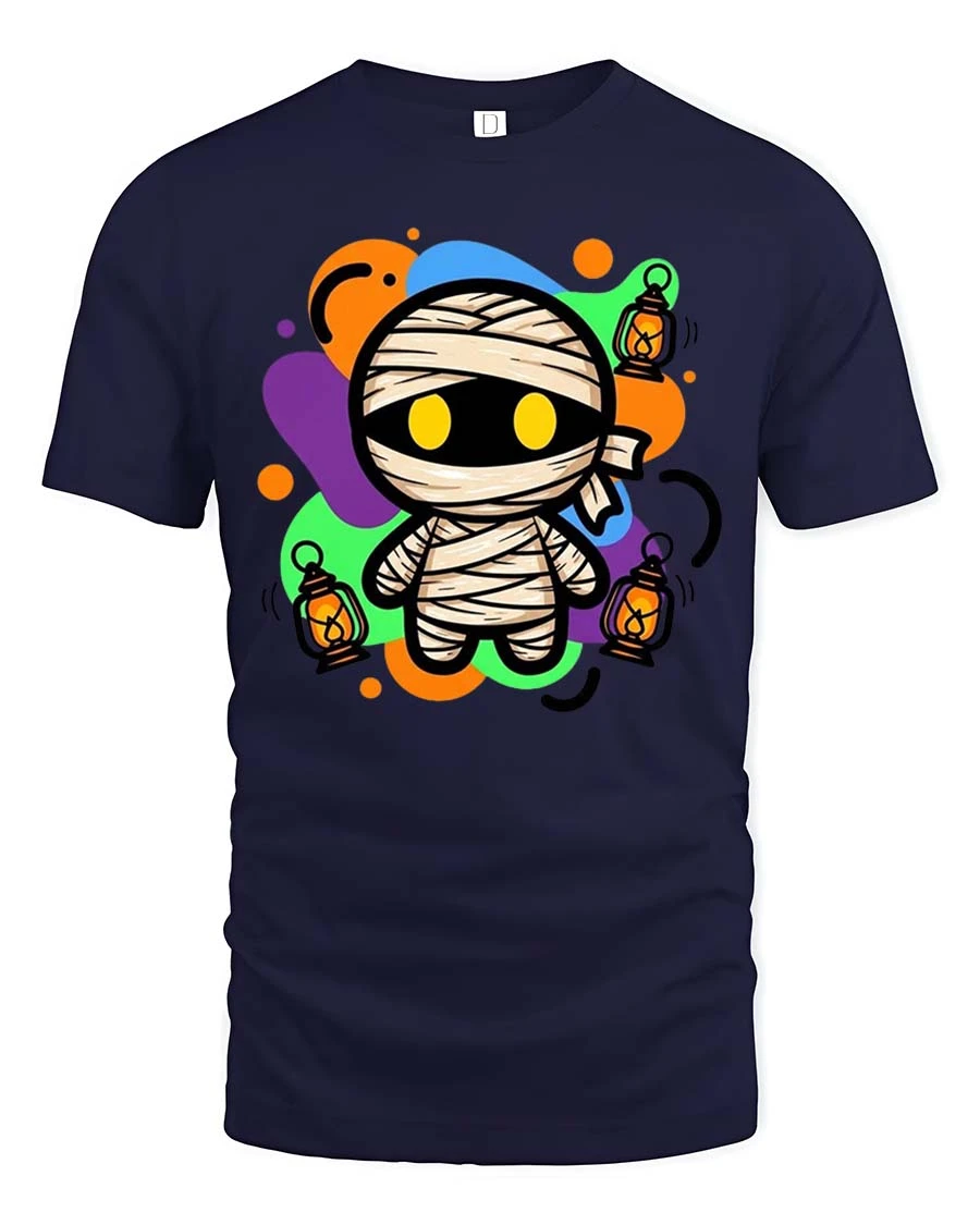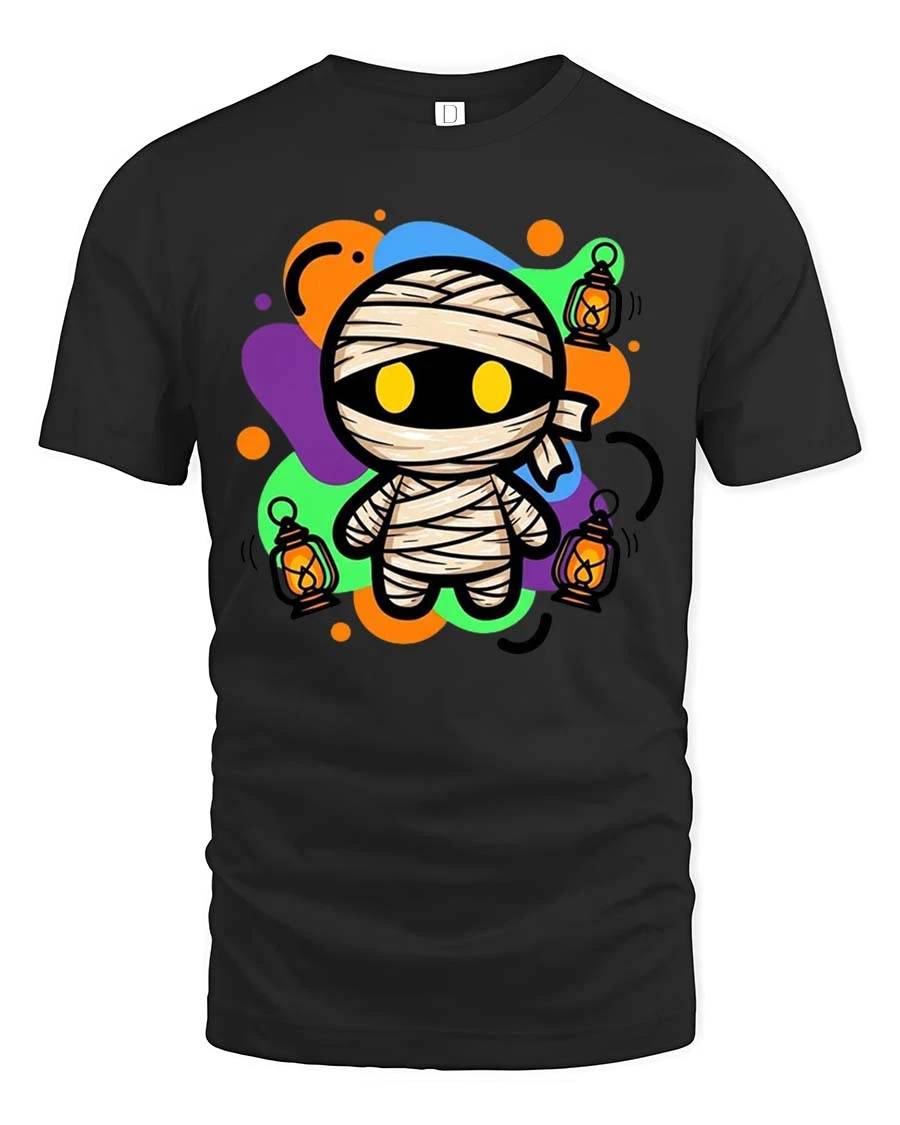 Cute Halloween Mummy Lantern Glow Graphic T-Shirt Costume brings playful spooky vibes to your seasonal wardrobe.