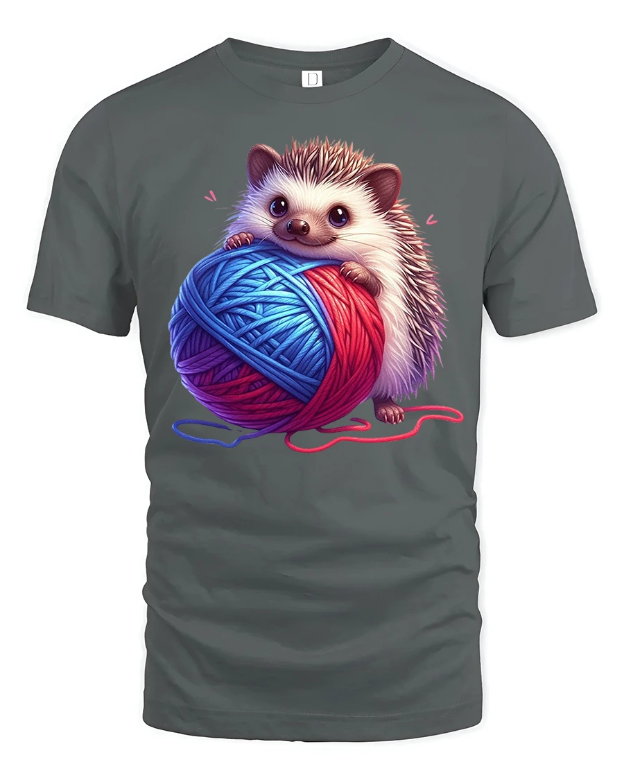 Cute Hedgehog Holding Yarn Cozy Craft Graphic Tee Tshirt brings warmth creativity and adorable charm into a beautifully playful design.