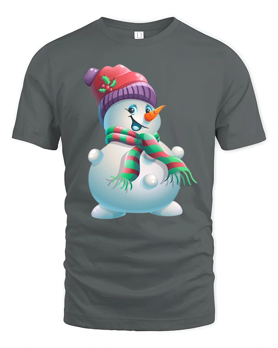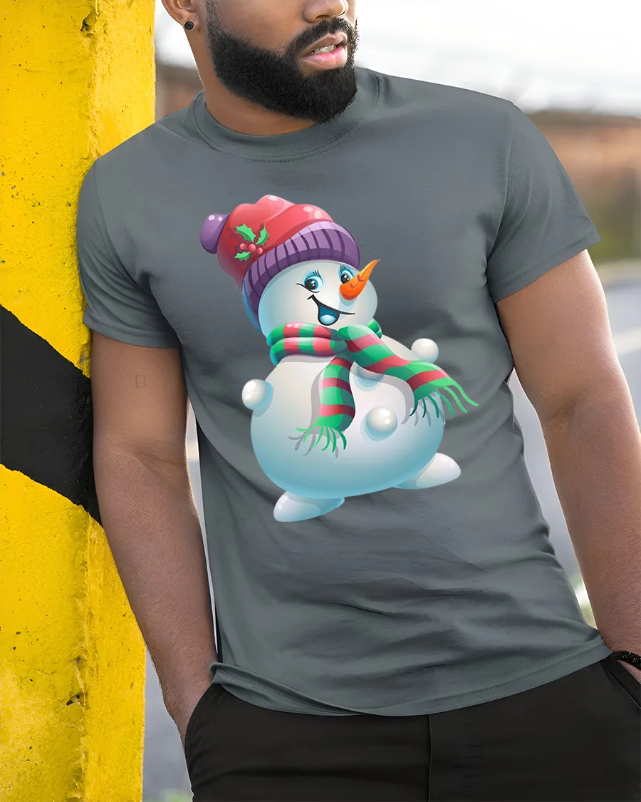 Crafted with vibrant colors and playful details, this tee is ideal for holiday gatherings, winter parties, family outings, or simply adding a touch of seasonal fun to your day. The lively snowman artwork creates a fun and uplifting mood that reflects the magic of winter celebrations and Christmas traditions.