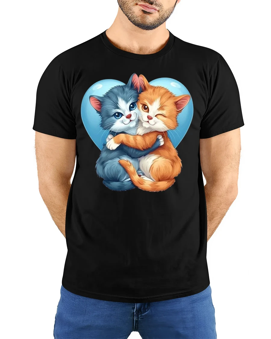 Made from soft, breathable fabric, this t-shirt offers comfort and style for everyday wear. The high-quality print brings out the vibrant details of the hugging cats, making it a standout piece in any casual outfit. Whether you’re at home with your pets, out with friends, or just want to show off your love for cats, this tee makes an excellent choice.