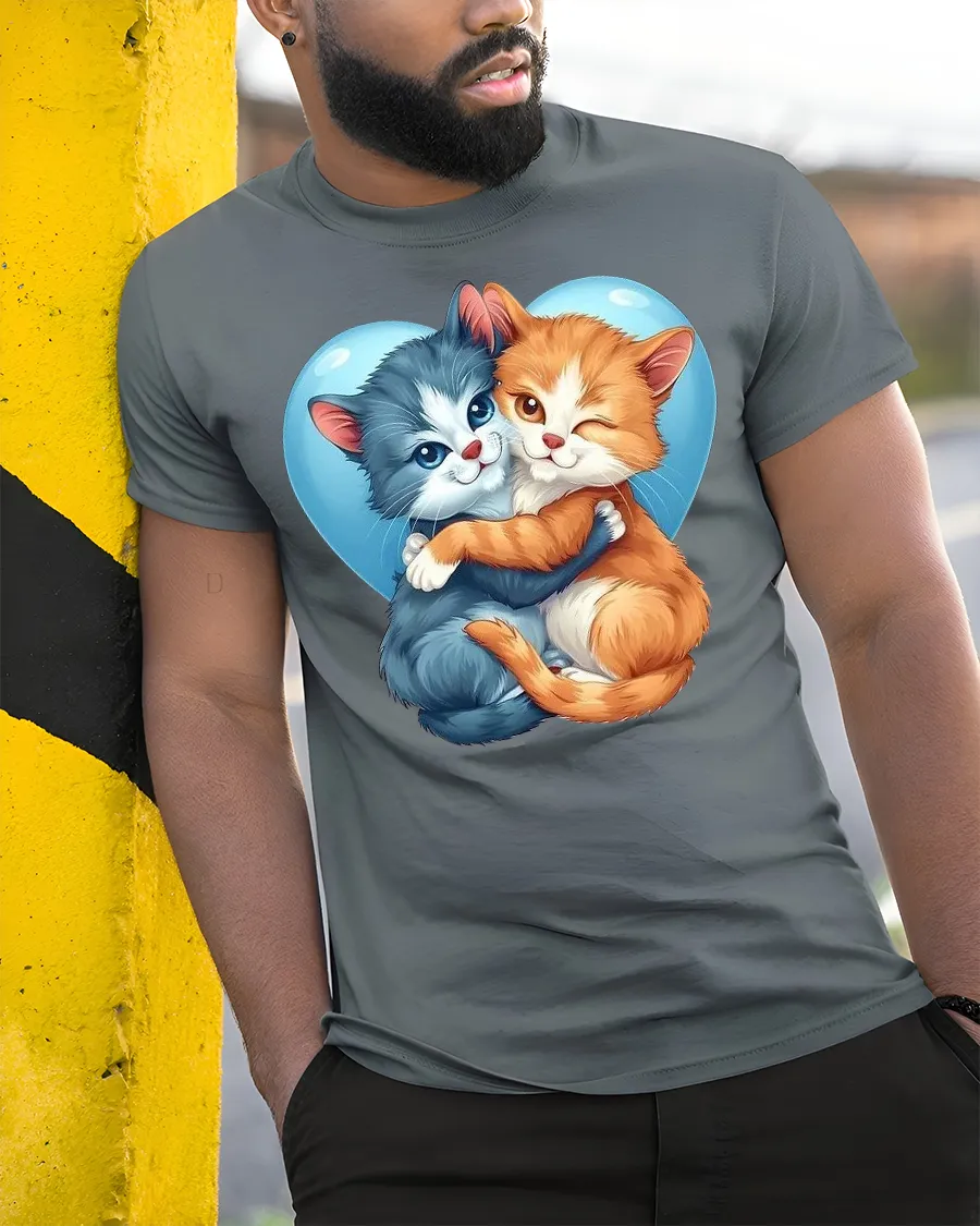 Cute Hugging Cats Heart Graphic Tee for Cat Lovers is the perfect shirt for anyone who adores cats and wants to share that love with the world. Featuring two adorable kittens cuddling inside a heart, this tee captures the sweetness of feline affection in a colorful and playful design.