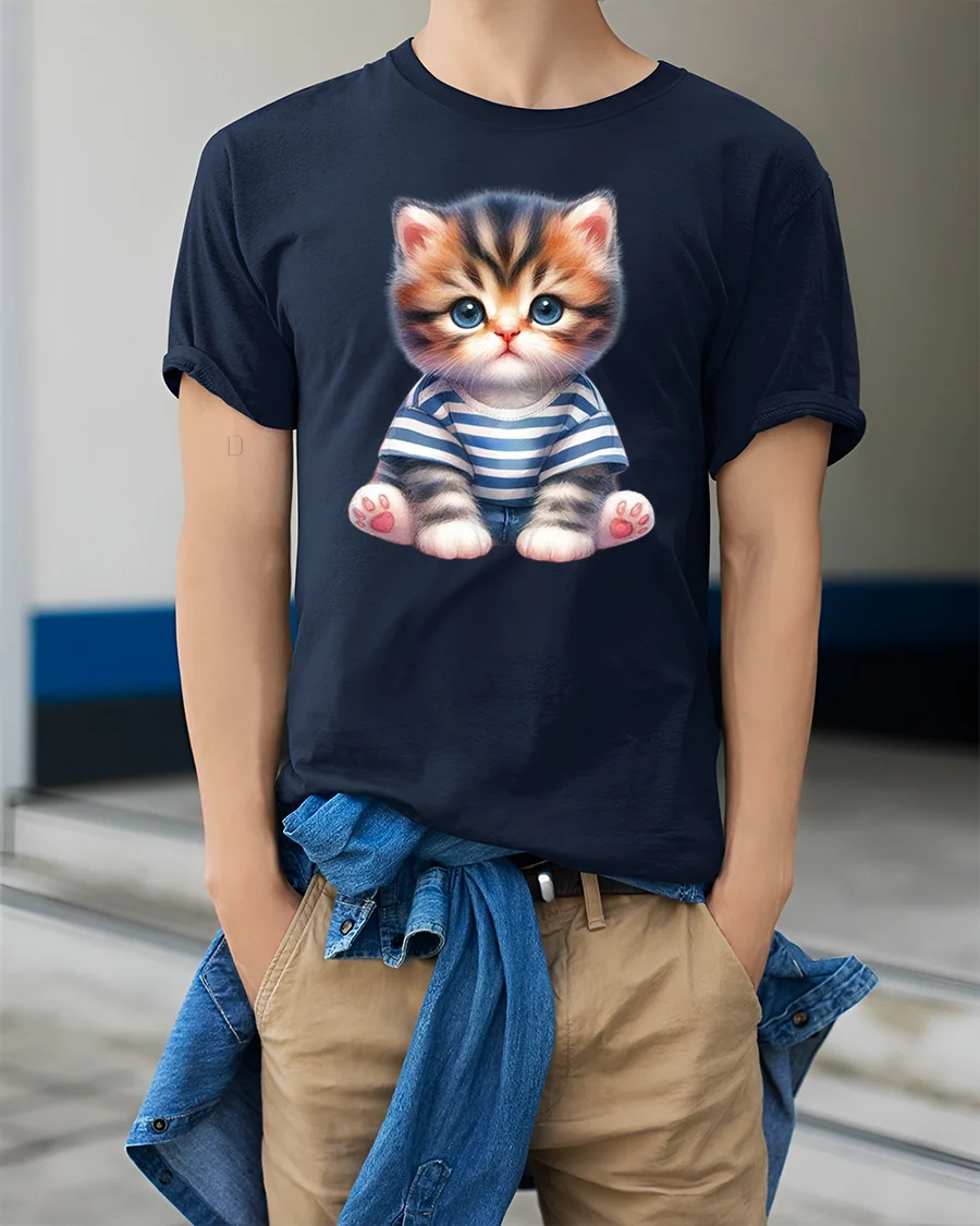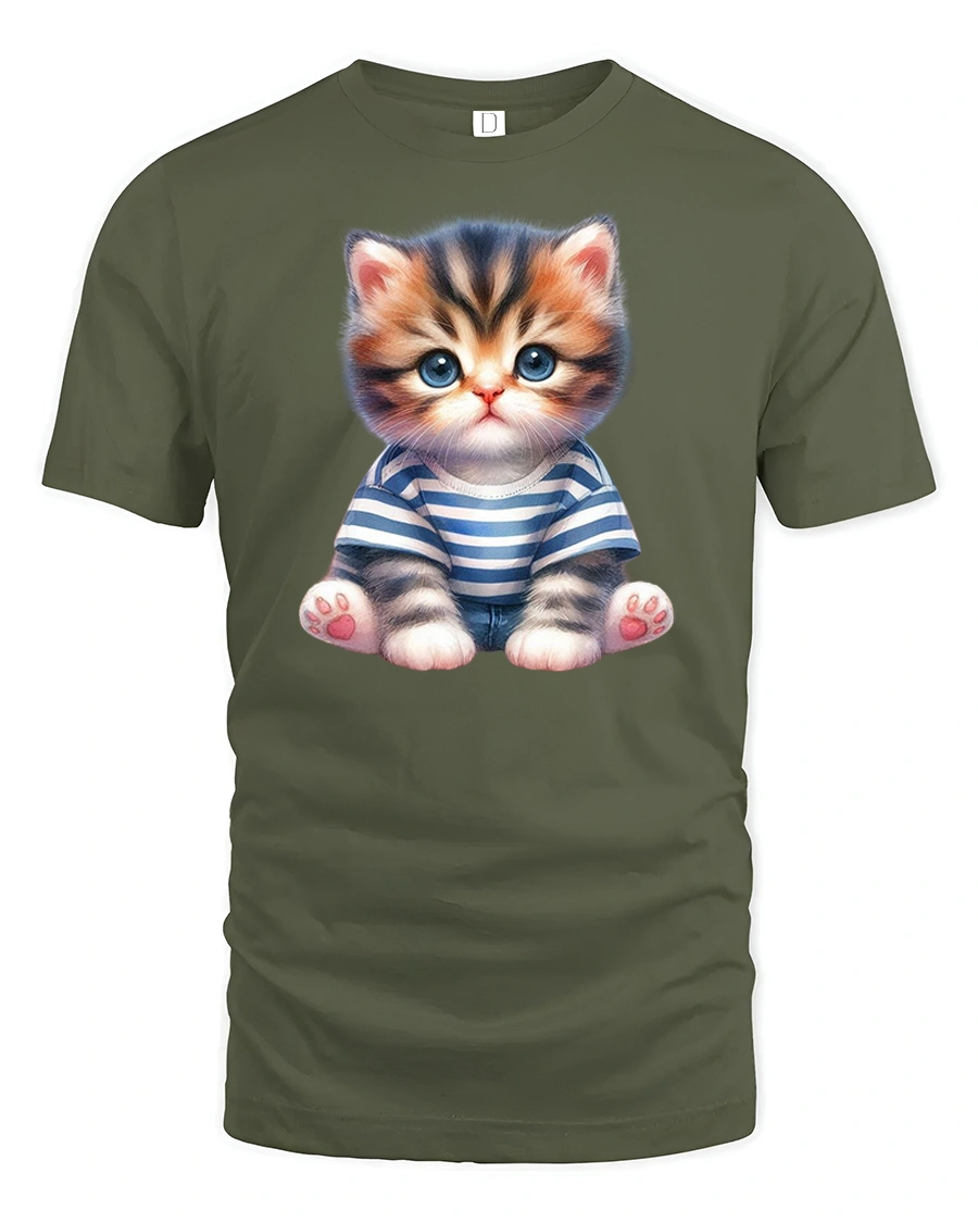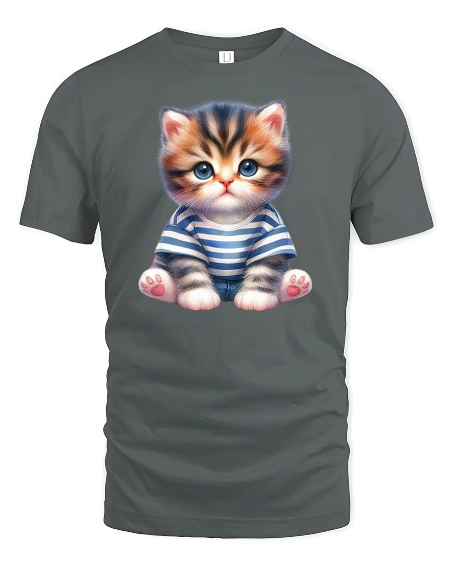 The Cute Kitten in Striped Shirt Graphic T Shirt Adorable Tee captures pure sweetness and charm in a heart melting design.