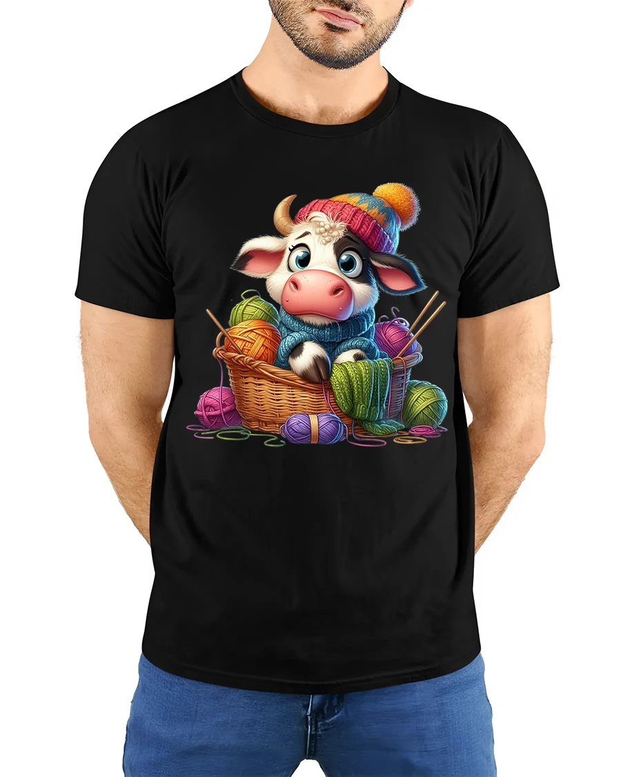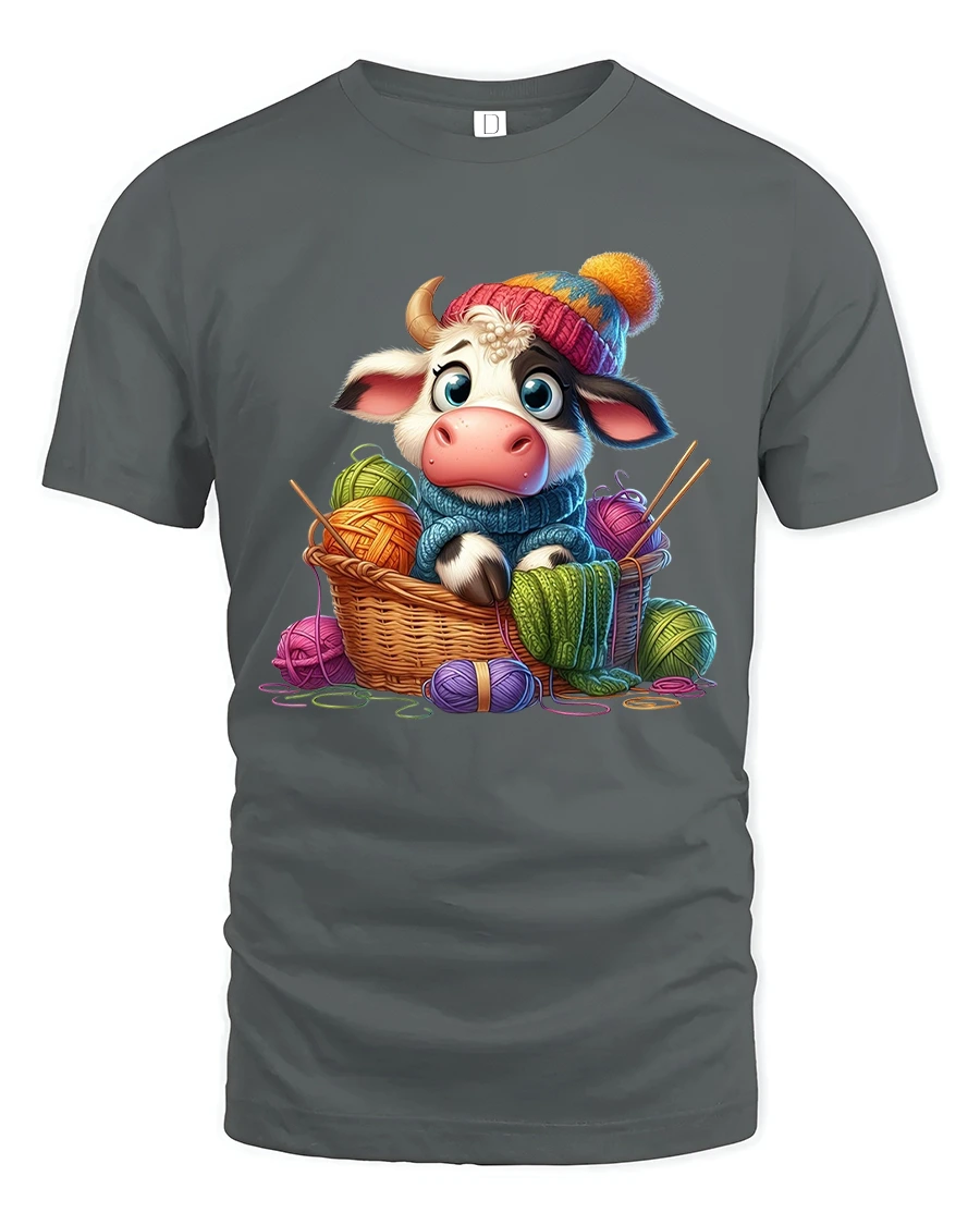 Cute Knitting Cow Graphic Tee With Cozy Handmade Vibes brings warmth charm and playful creativity together.