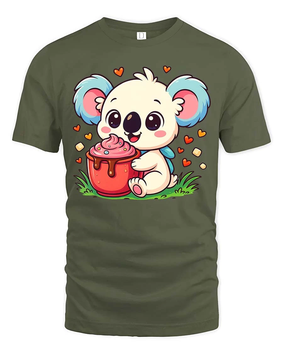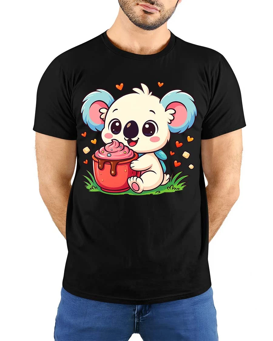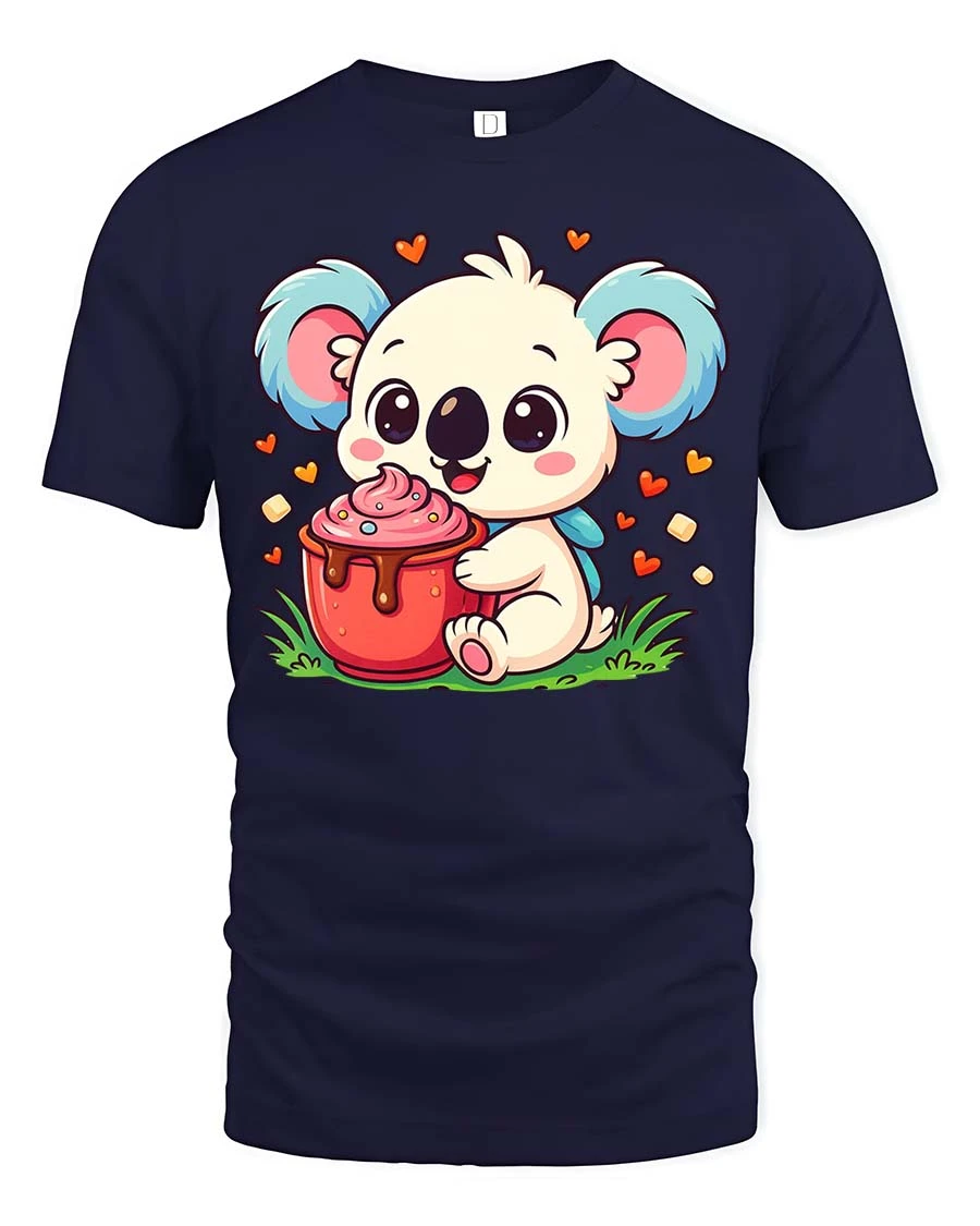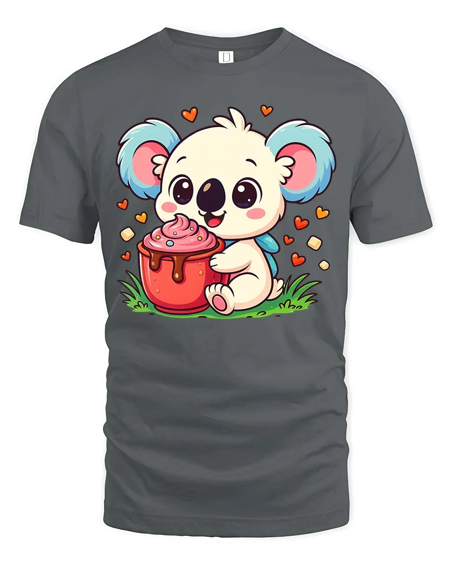Featuring a lovable koala enjoying a colorful dessert, this t-shirt creates a cheerful and heartwarming vibe perfect for everyday wear.