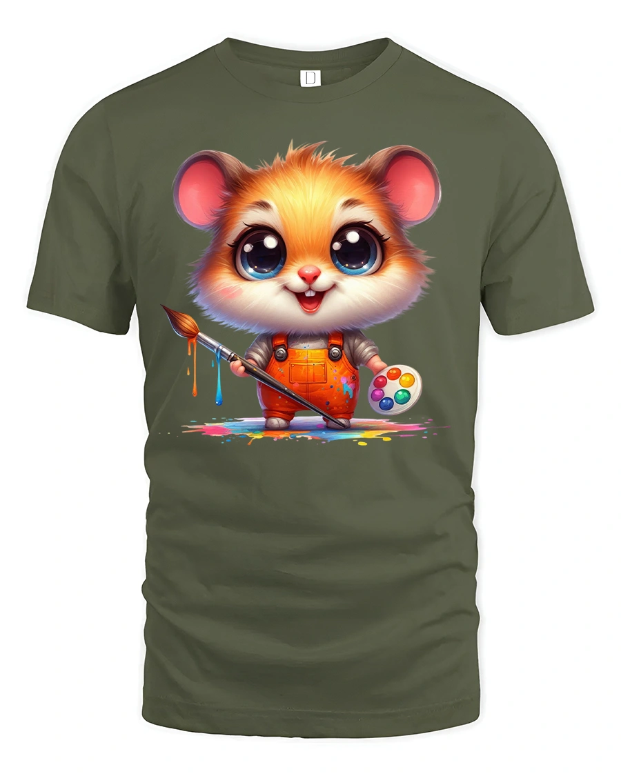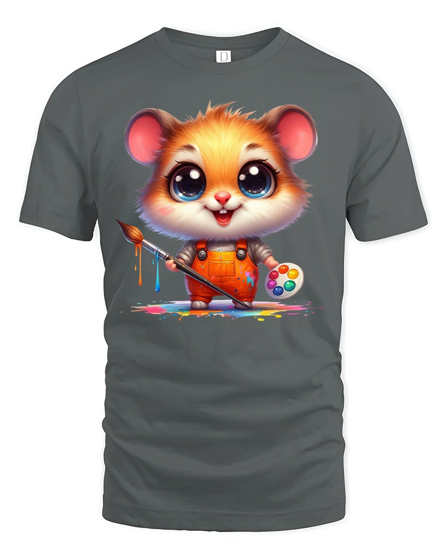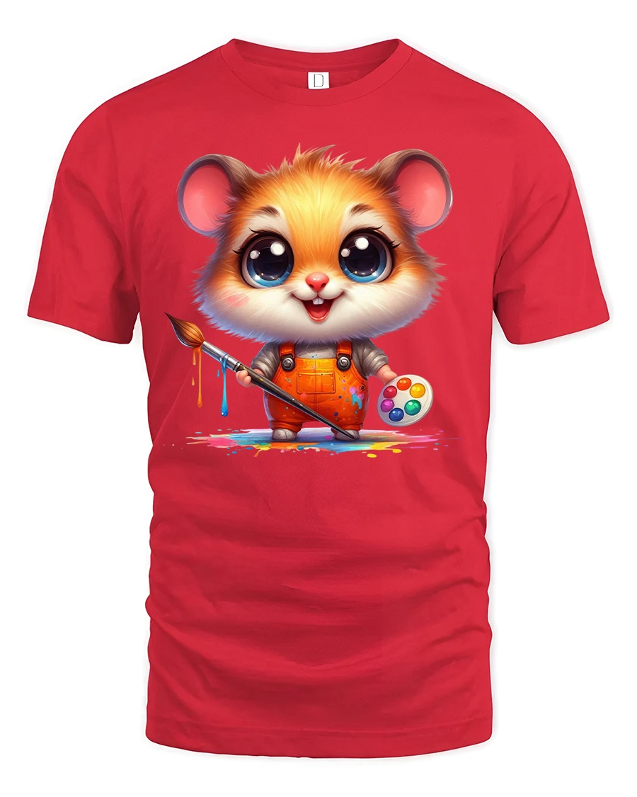 Cute Painter Hamster Artist Printed Graphic Tee is a playful design that captures creativity and cuteness in one. Featuring an adorable hamster in orange overalls holding a paintbrush and palette, this shirt bursts with artistic charm and vibrant colors.