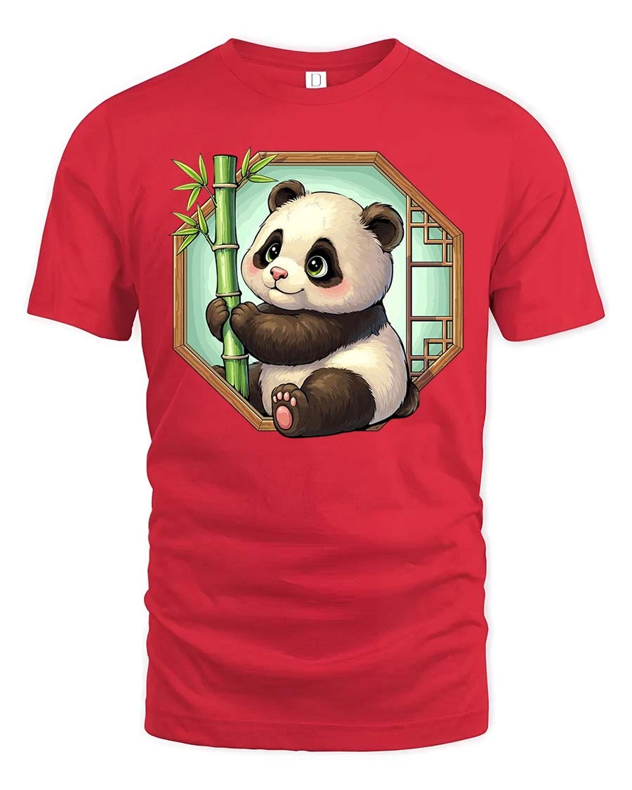 Cute Panda Bamboo Cartoon Graphic t-shirt Soft Premium - red t-shirt on white background