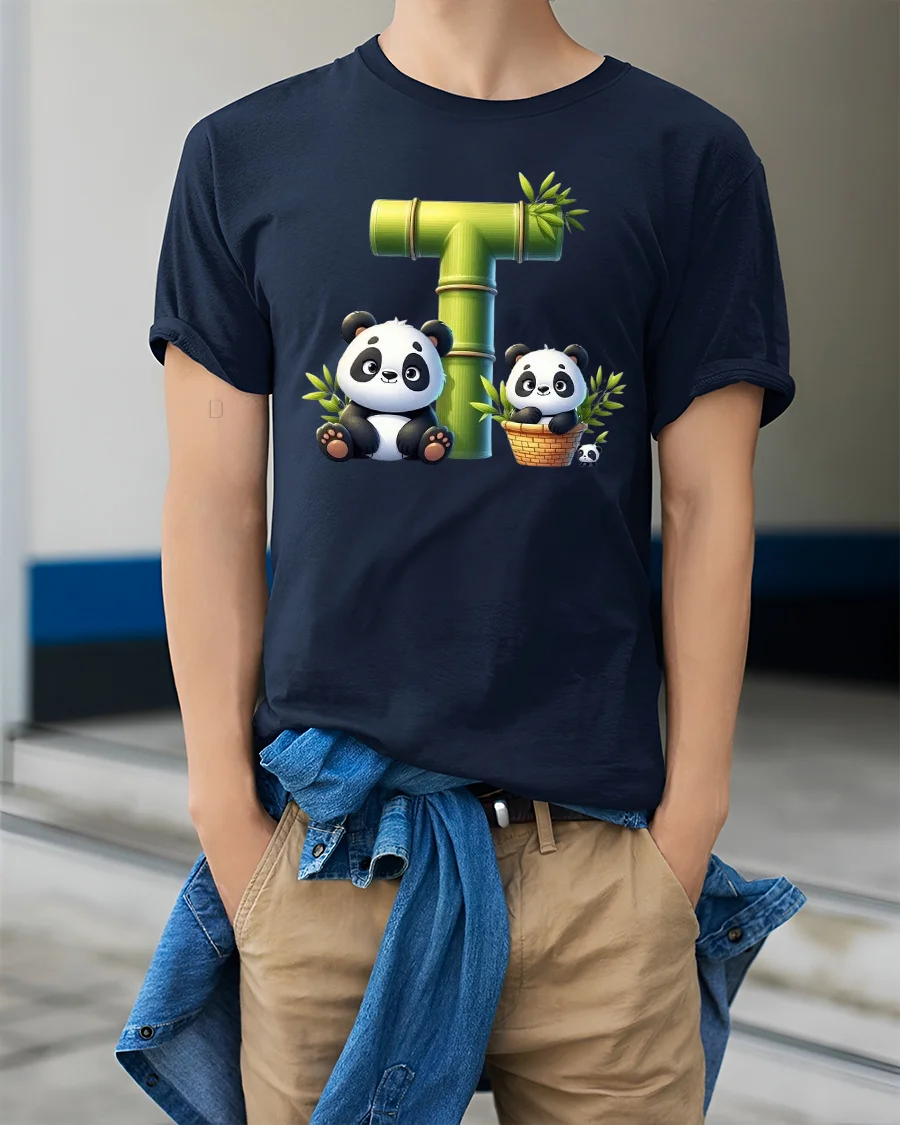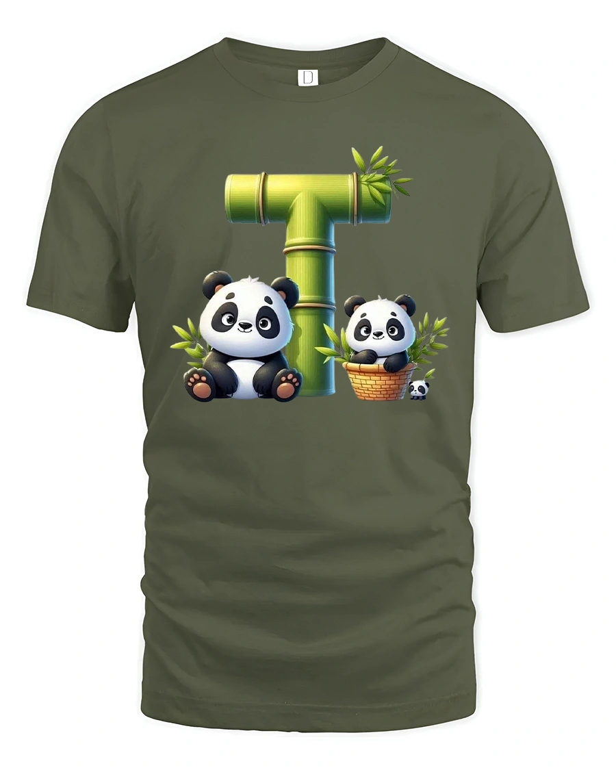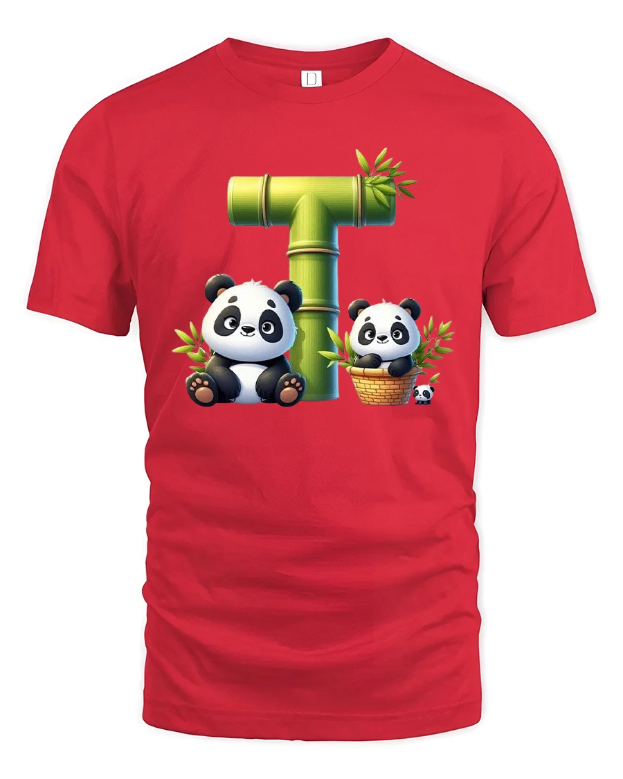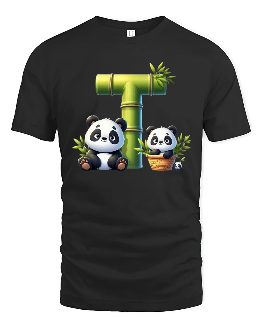 Bring smiles wherever you go with this Cute Panda Bamboo Letter T Funny Animal Graphic Tee.