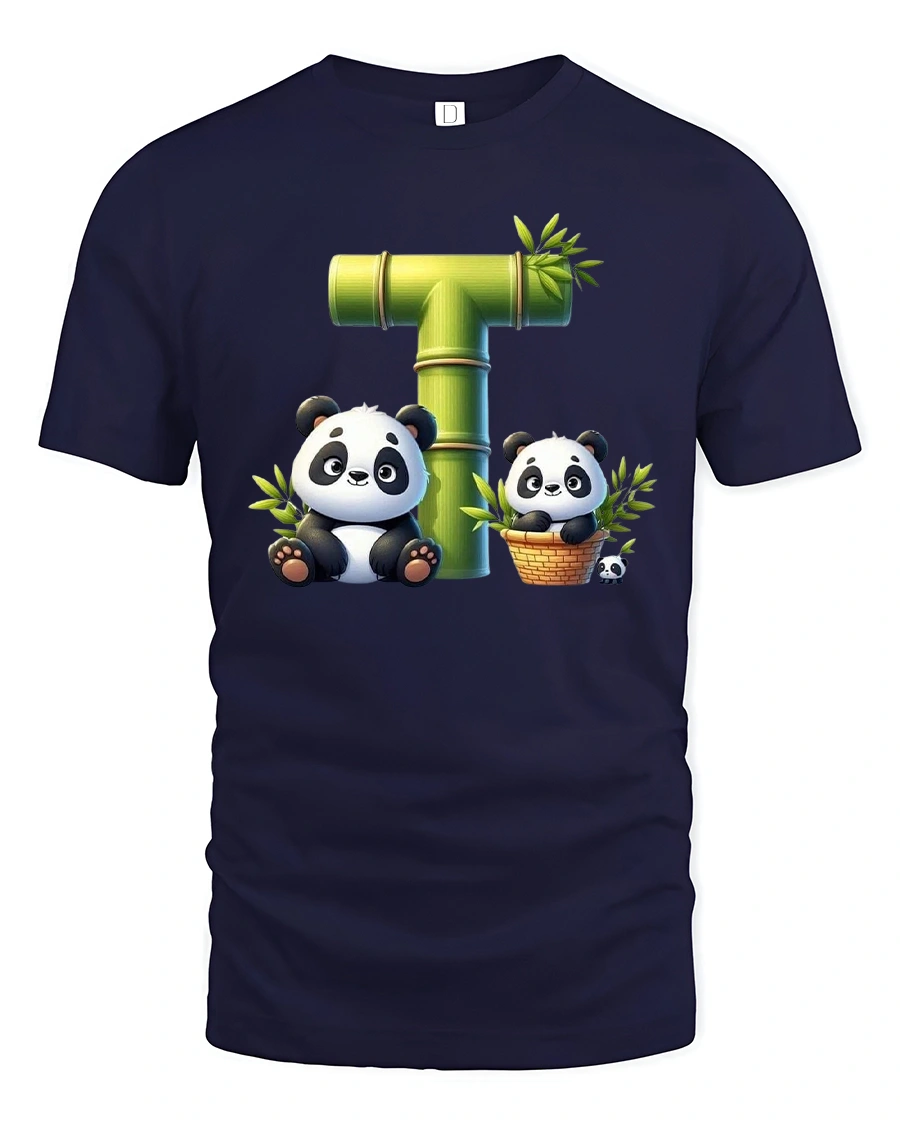 Featuring two adorable pandas playing around a bamboo letter T, this design captures the perfect mix of sweetness and humor.