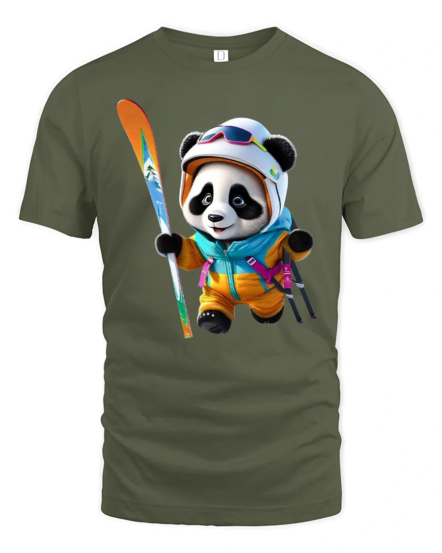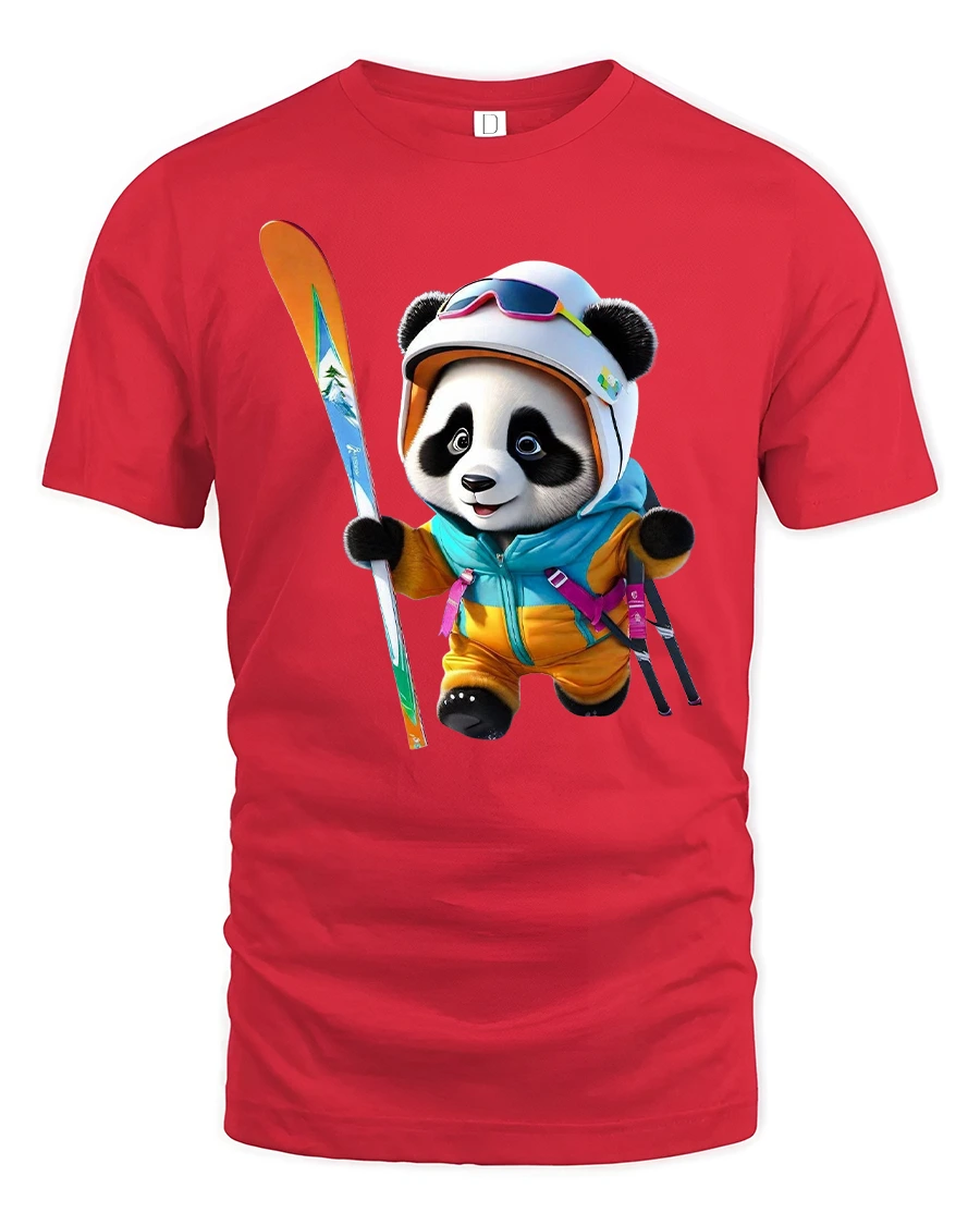 This cute panda skier tshirt is perfect for those who love cute animals snowy adventures and cheerful designs.