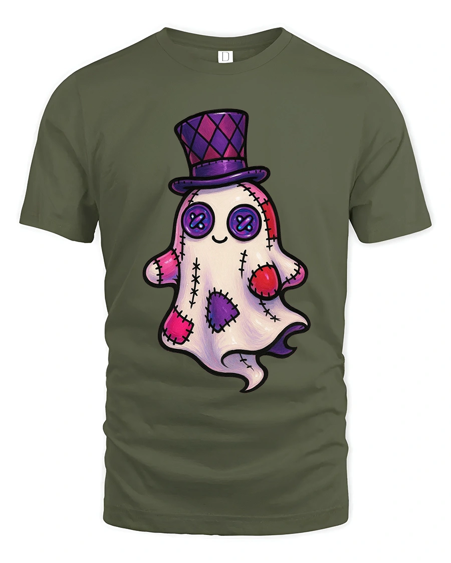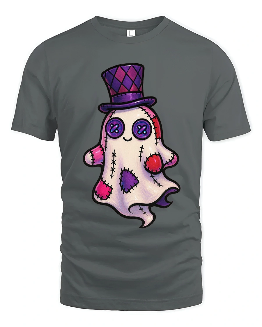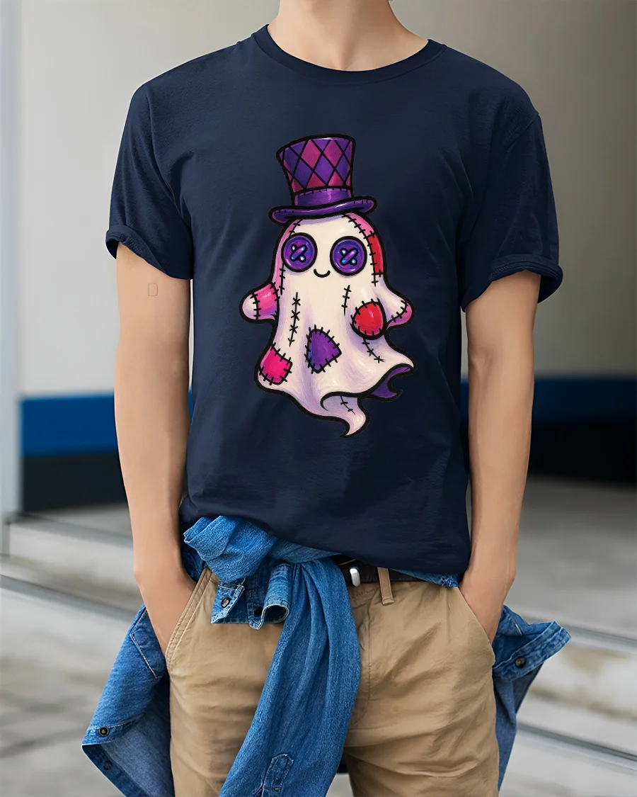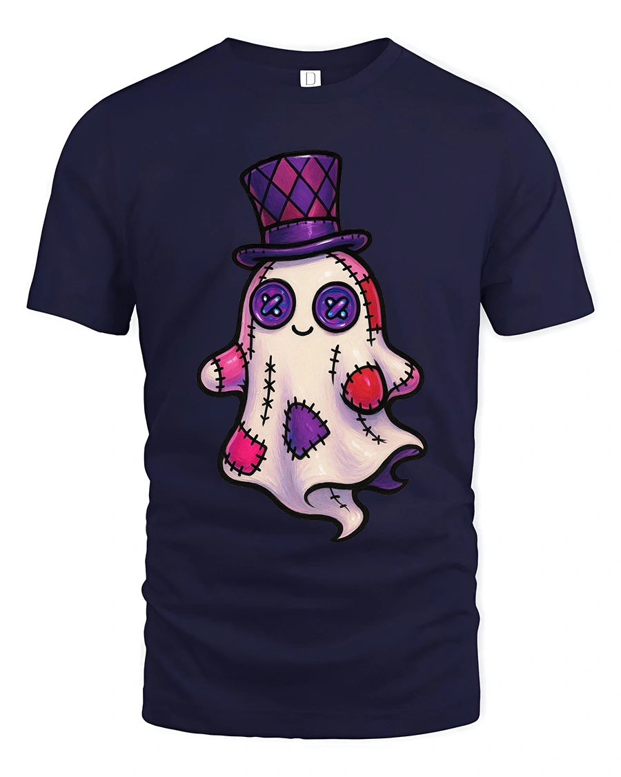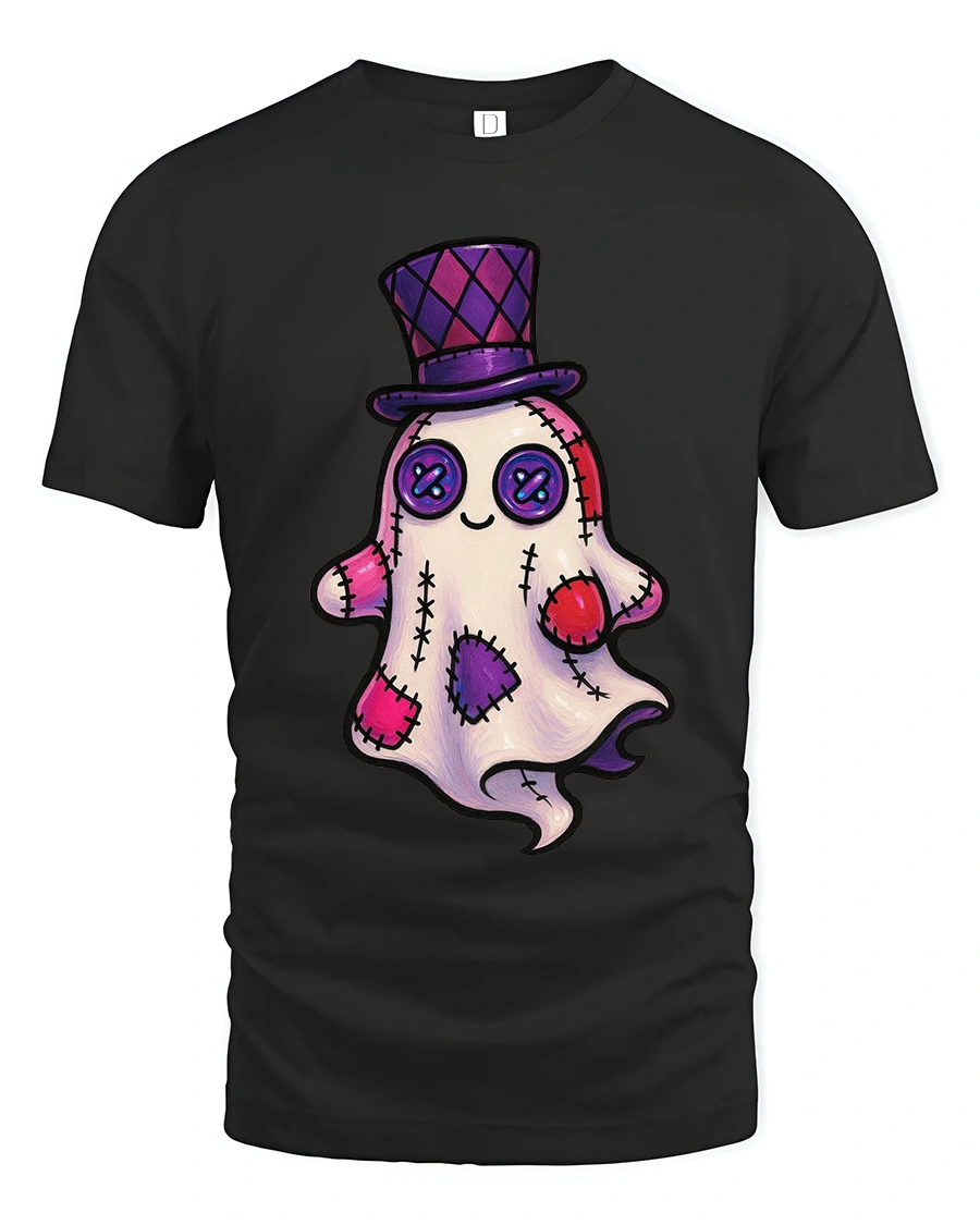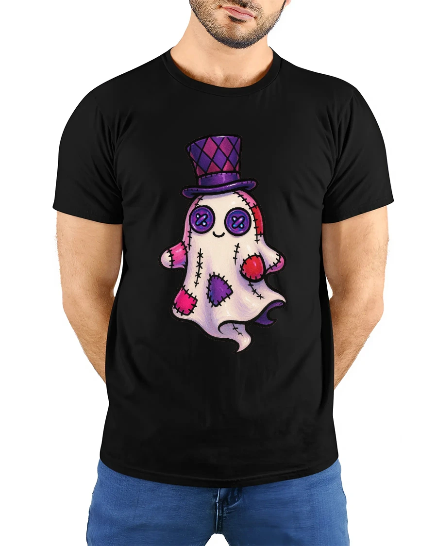 The Cute Patchwork Ghost Art Tee Funny Spooky Cartoon Graphic T Shirt blends playful charm with lighthearted spooky style.